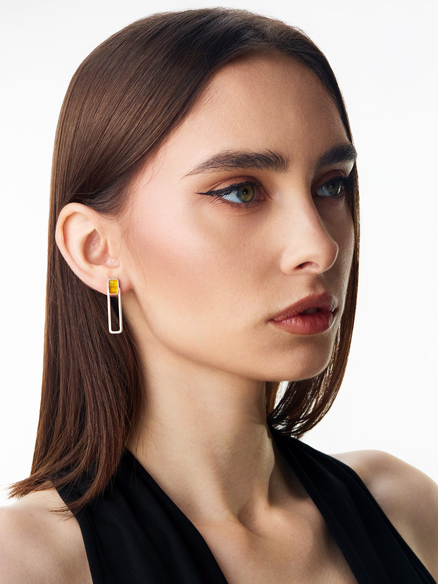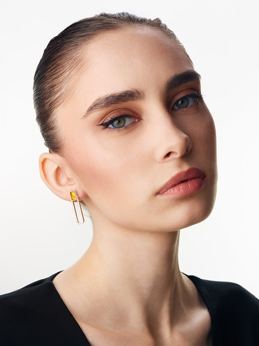 Серьги-гвоздики London с вставками из лимонного янтаря