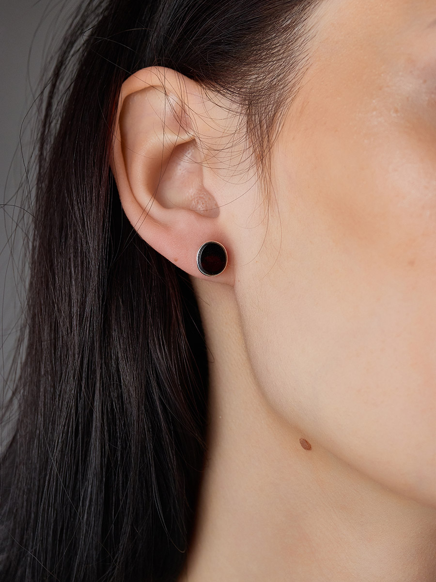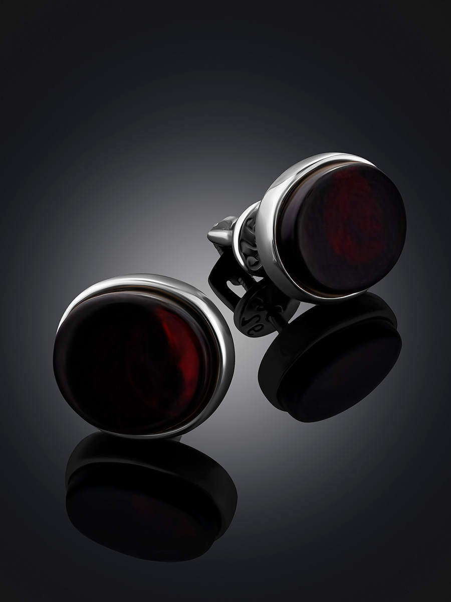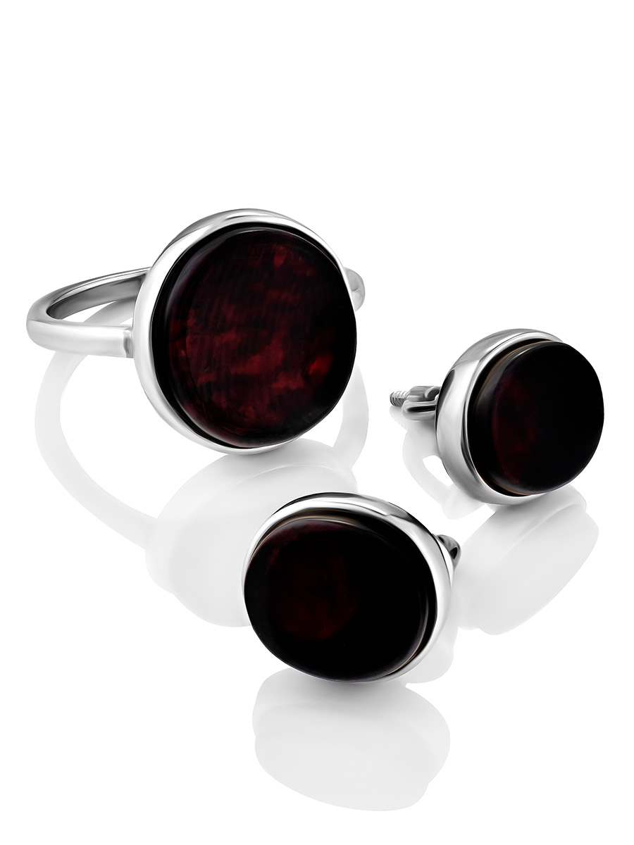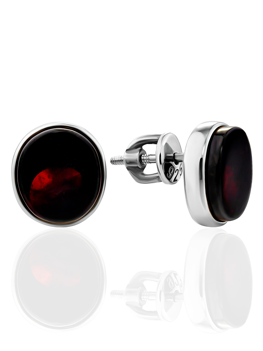 Серьги-гвоздики овальной формы из вишнёвого янтаря «Бенефис»