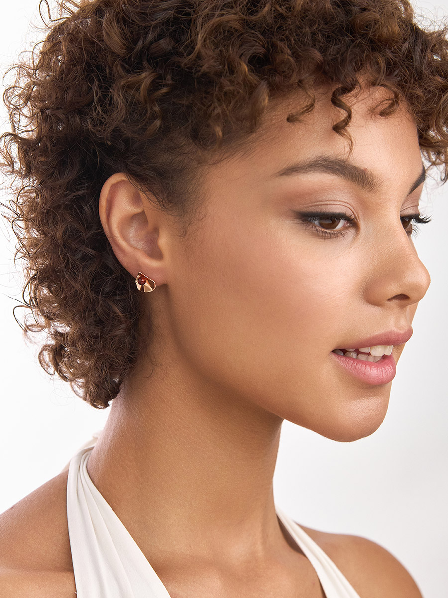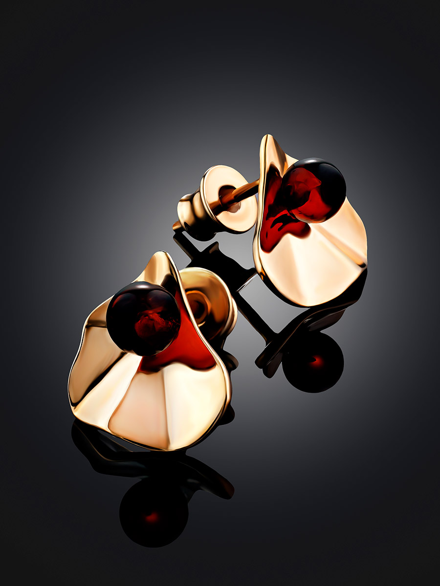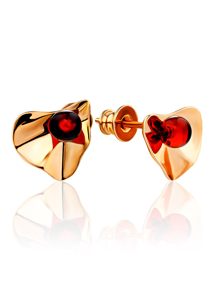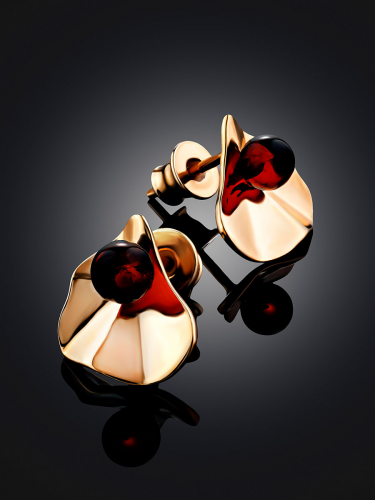 Серьги-гвоздики Palazzo от ifamore™ с натуральным янтарём