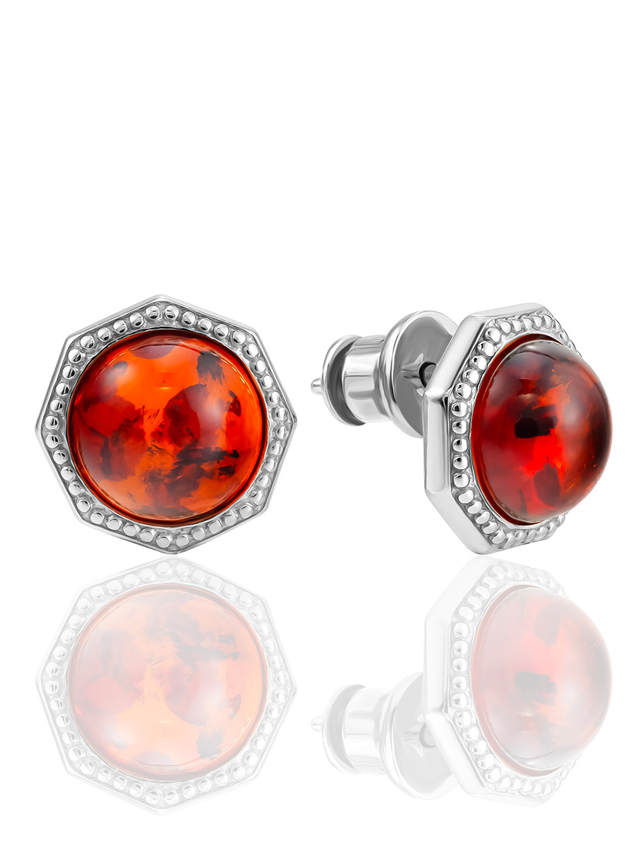 Серьги-гвоздики с натуральным тёмно-коньячным янтарём «Шахерезада»