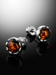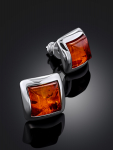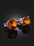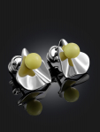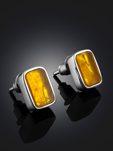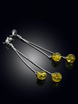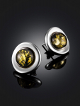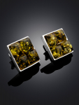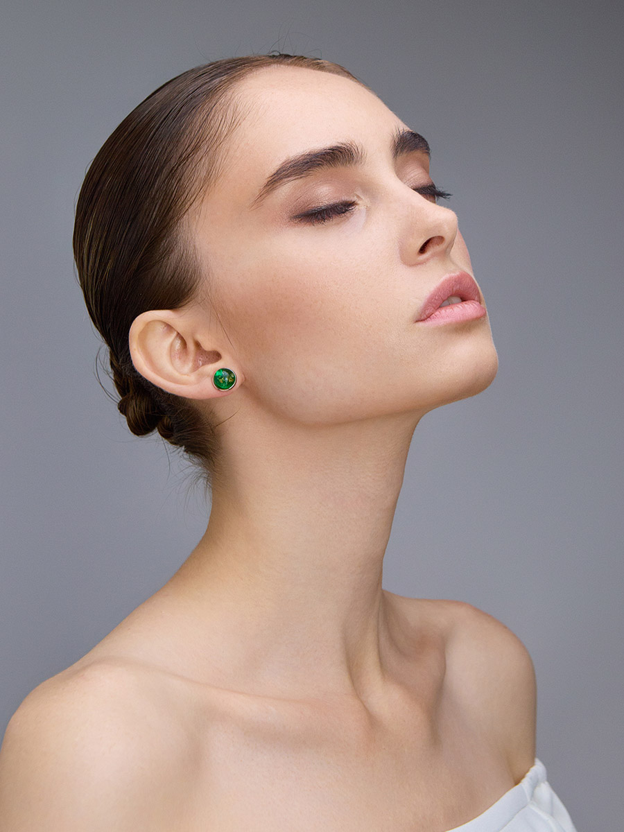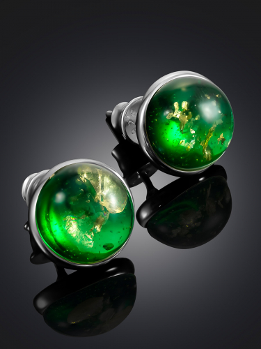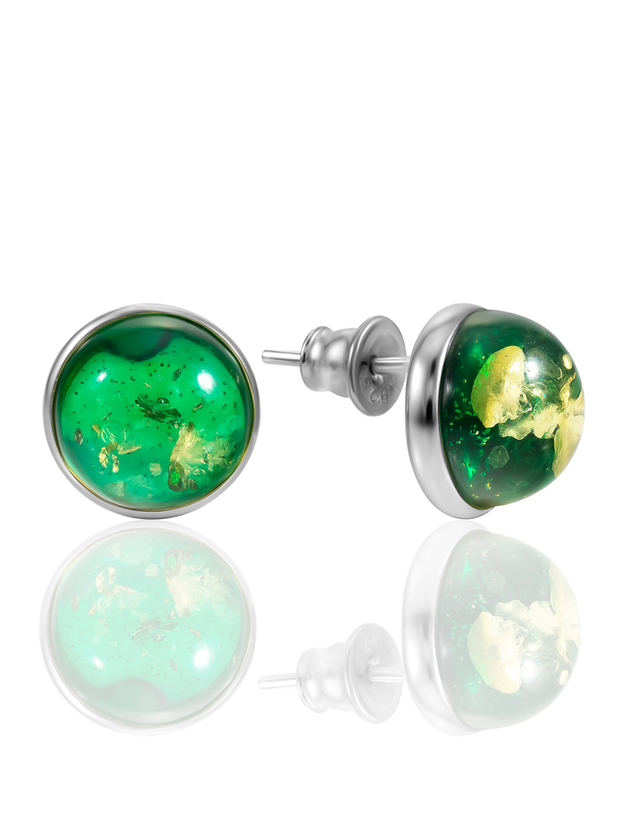Серьги-гвоздики с ярким изумрудным янтарём «Сорбонна»