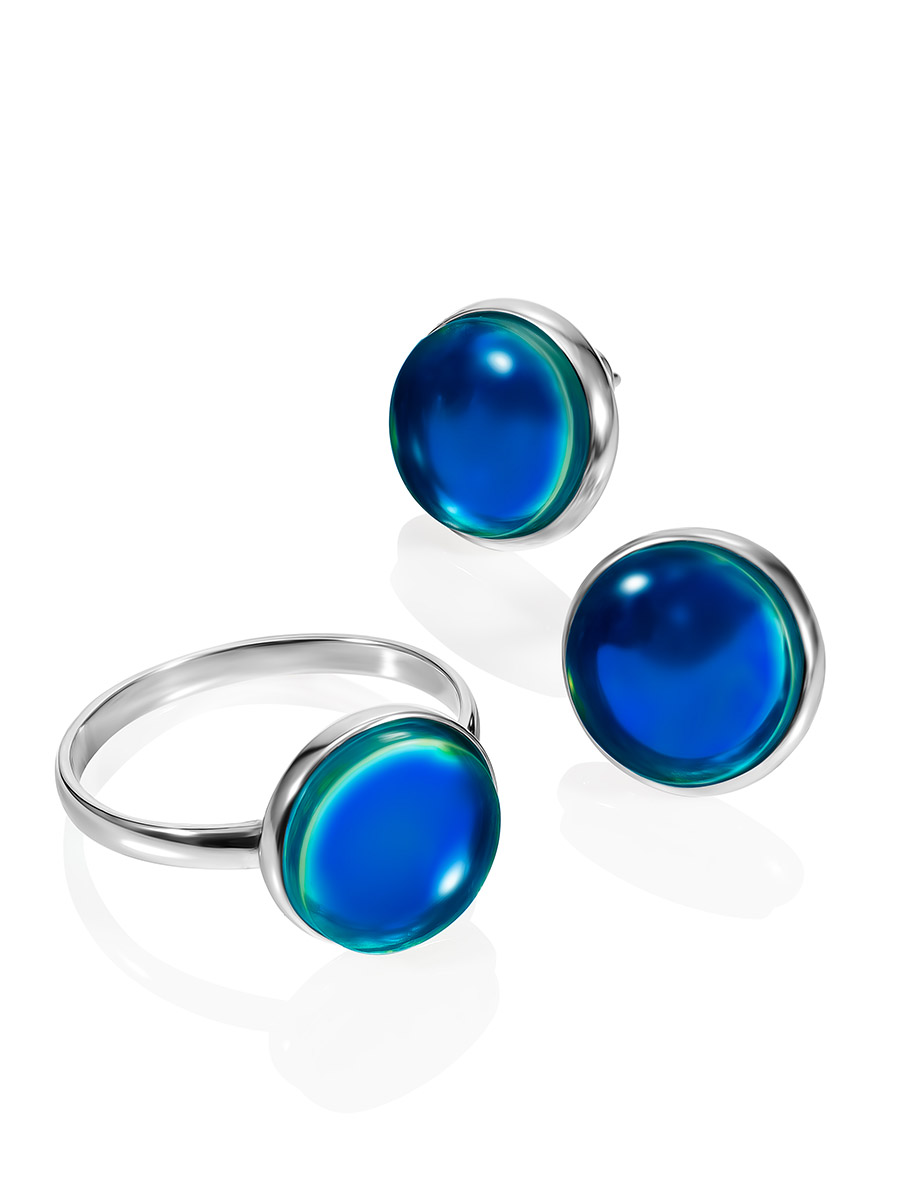 Серьги-гвоздики с ярко-синим янтарём «Фурор»