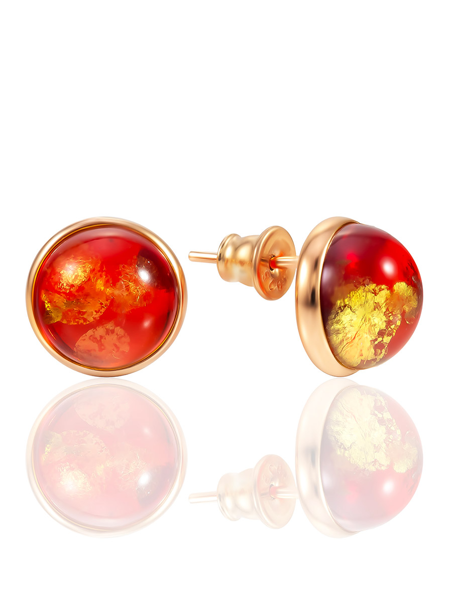 Серьги-гвоздики «Сорбонна» с янтарём ярко-красного цвета