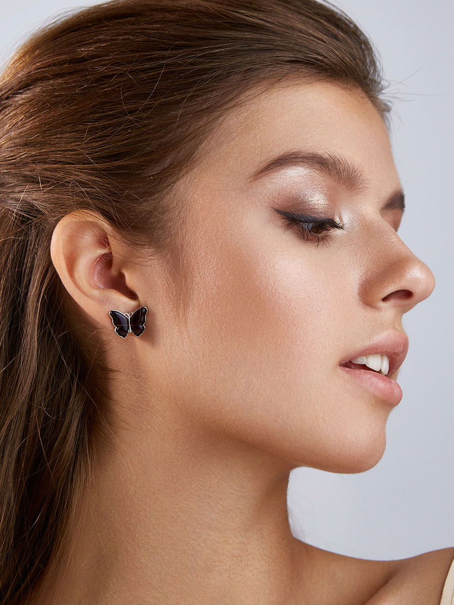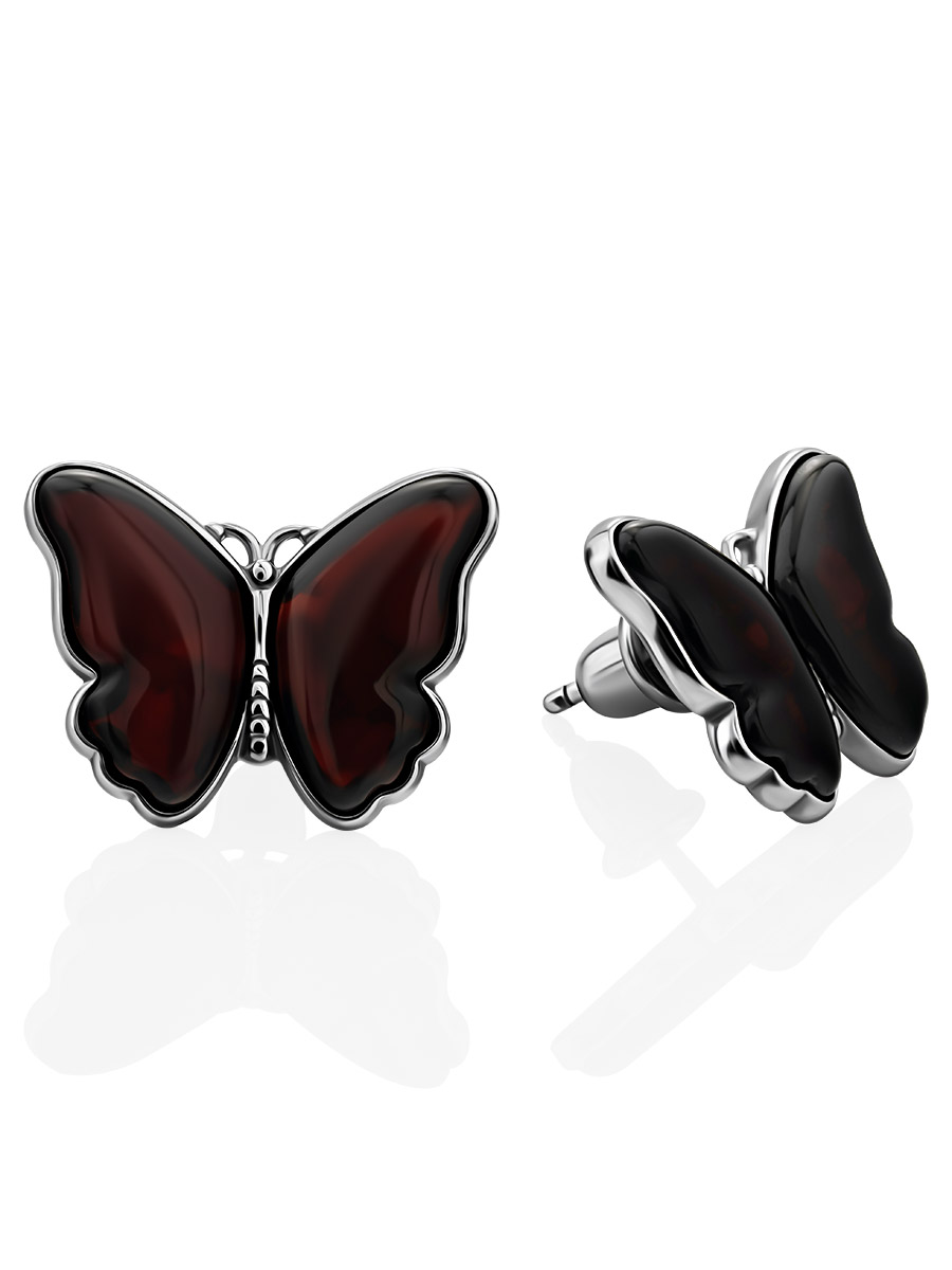 Серьги-гвоздики в романтичном дизайне из вишнёвого янтаря «Апрель»