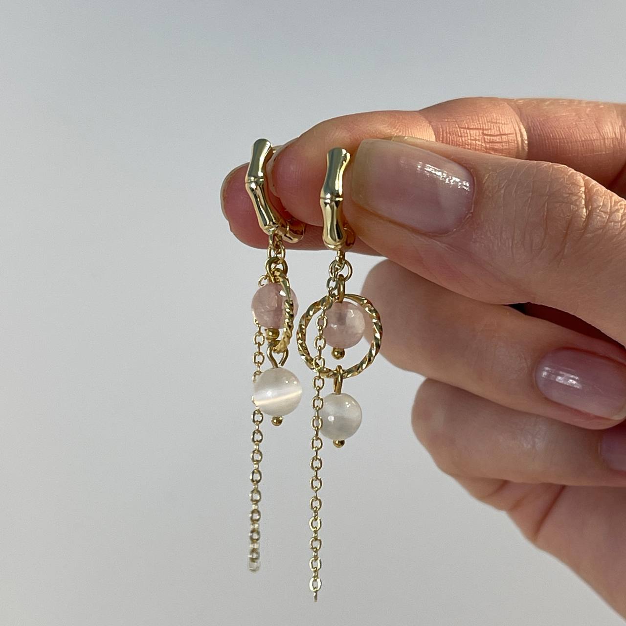 Радуга Самоцветов Серьги из Розового кварца и Селенита