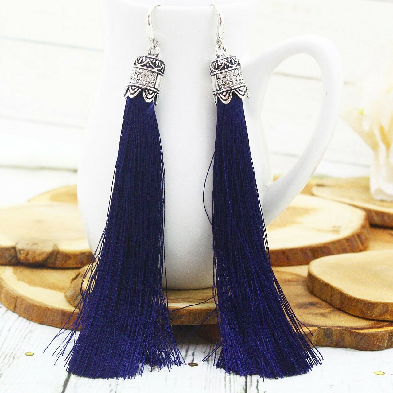 Серьги Красивые серьги изготовлены из специального гипоаллергенного ювелирного сплава, предотвращающим раздражение кожных покровов. Длина 10 см