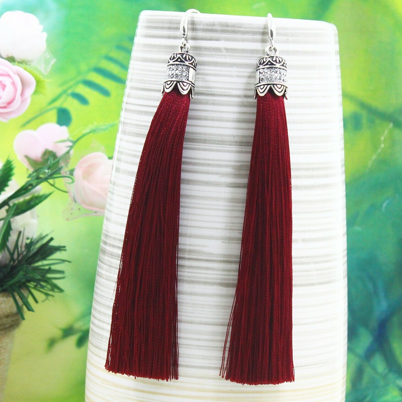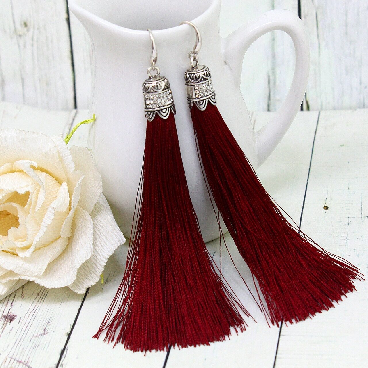 Серьги Красивые серьги изготовлены из специального гипоаллергенного ювелирного сплава, предотвращающим раздражение кожных покровов. Длина 10 см