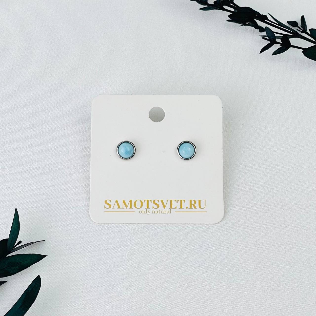 Цвет камня: Голубой Месторождение..показать: Доминиканская Республика Камень: Ларимар Покрытие: Серебро (покр) Диаметр: 7,5 мм Поверхность: Гладкий Тип швензы: Гвоздики: Доминиканская Республика