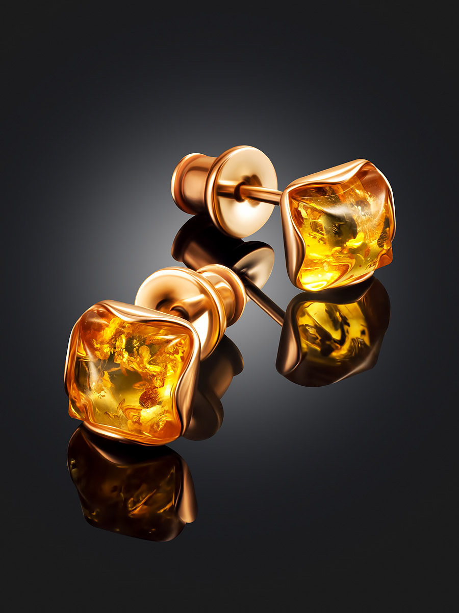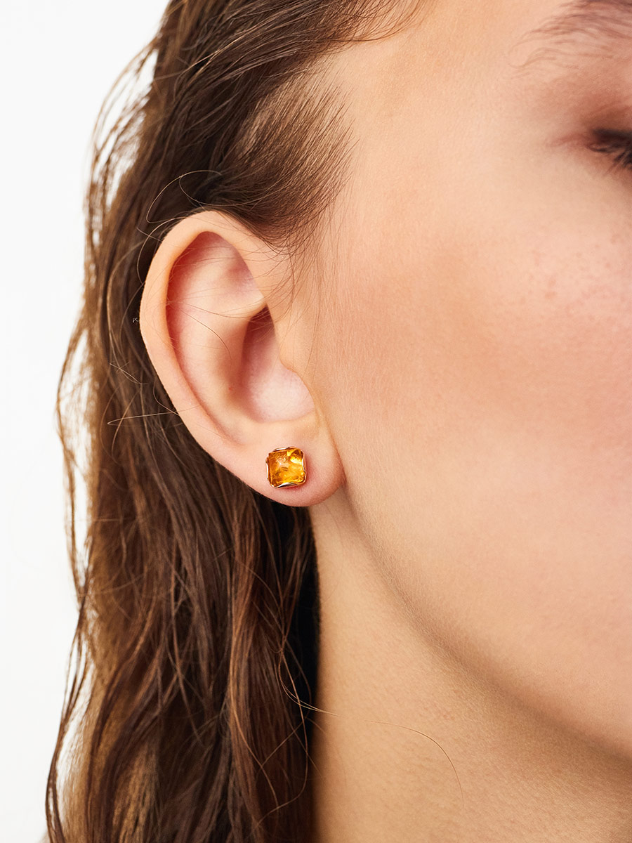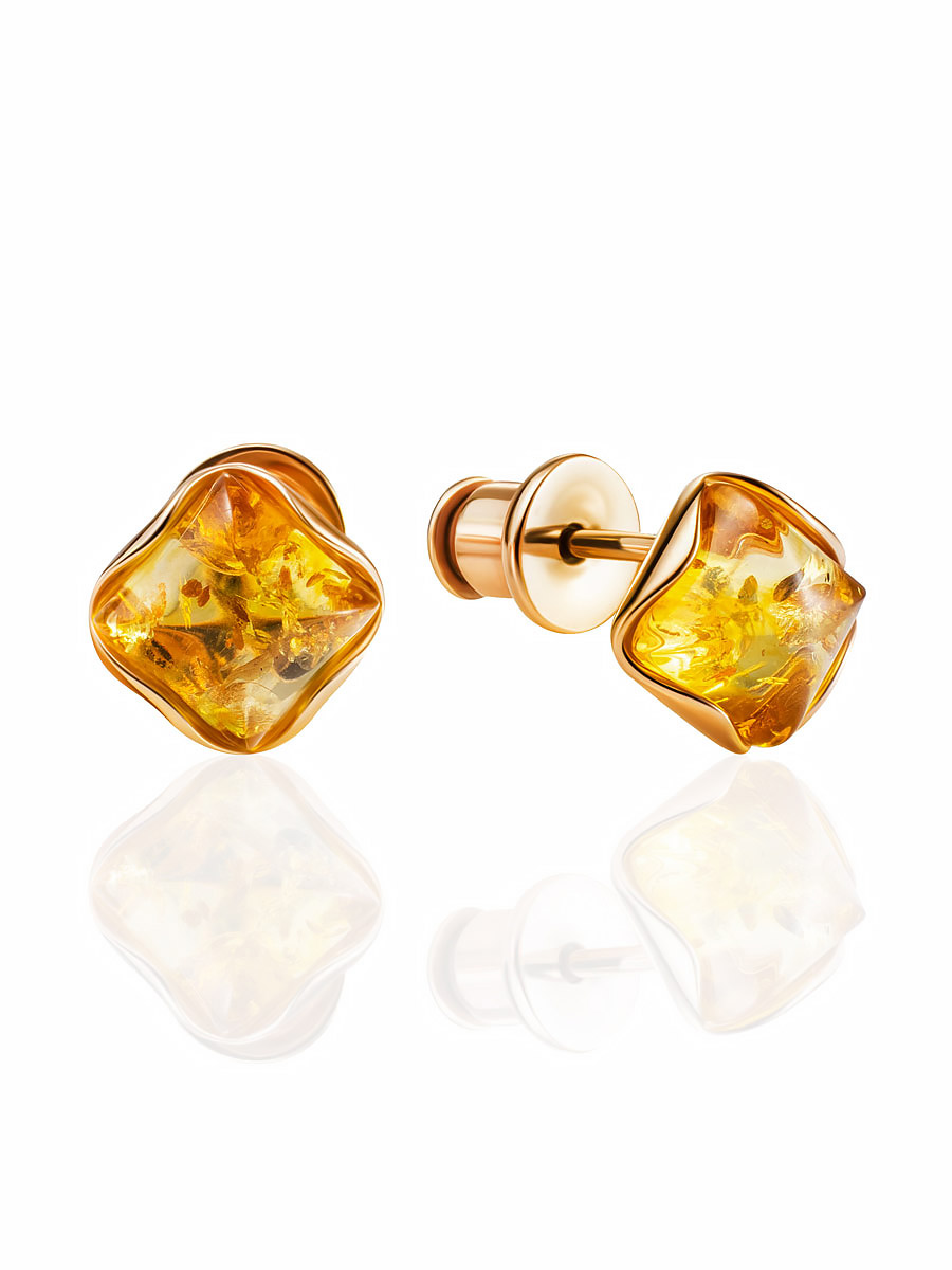 Серьги-пусеты с натуральным лимонным янтарем «Квадрат»