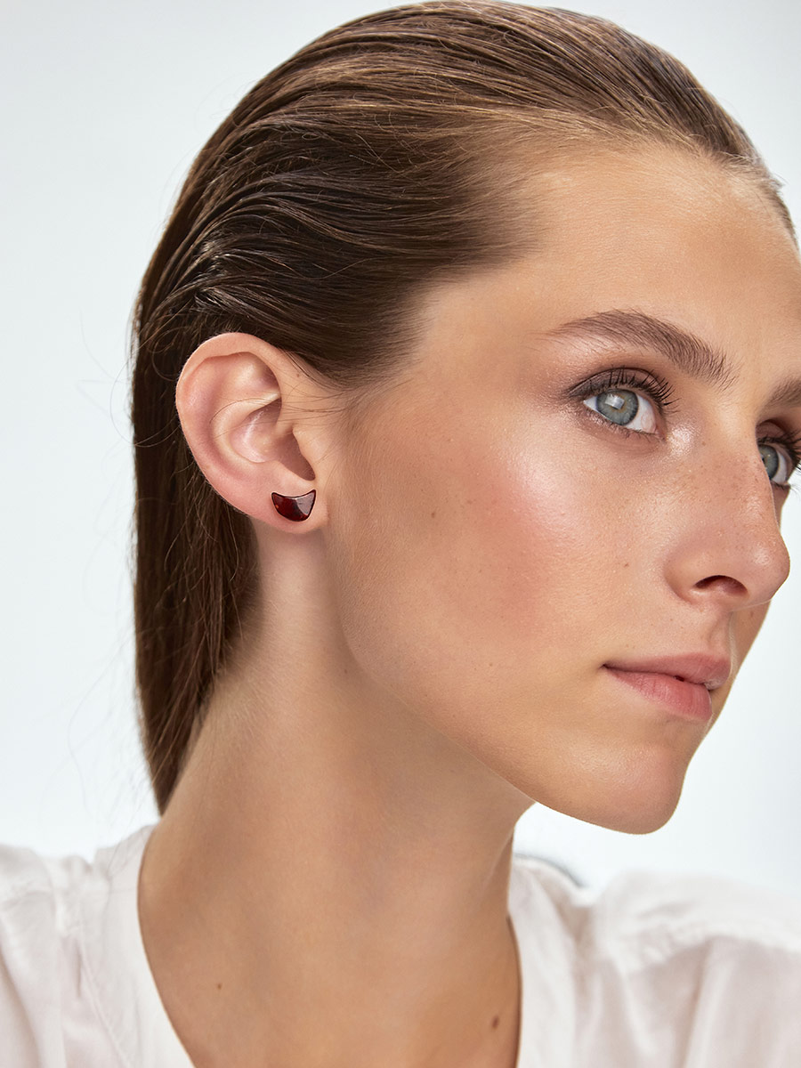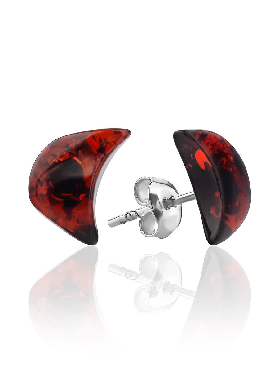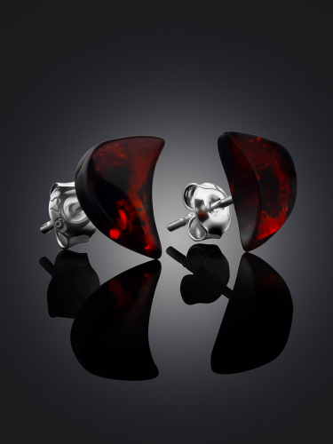 Серьги-пусеты с натуральным янтарем «Вишневые полумесяцы»