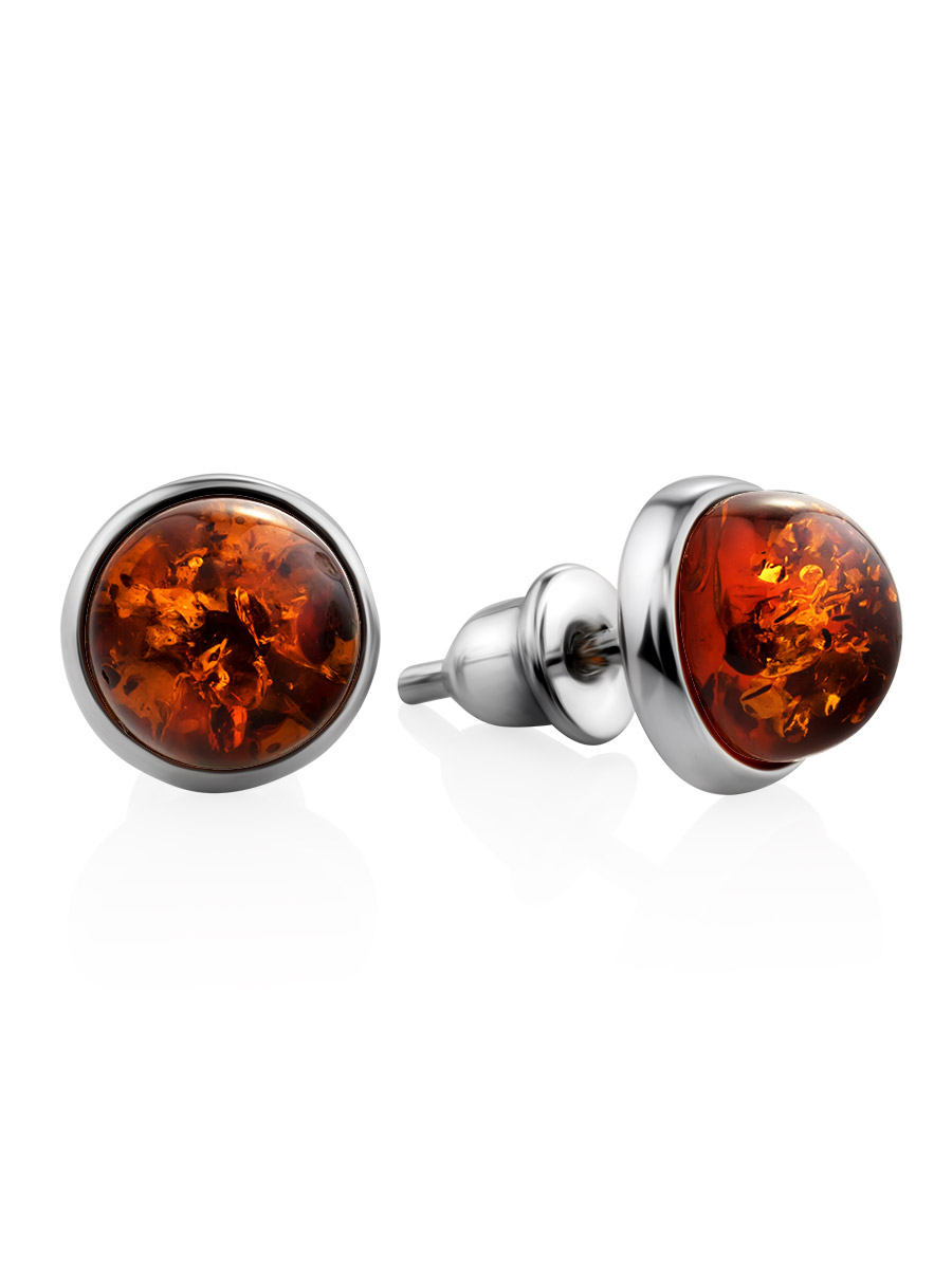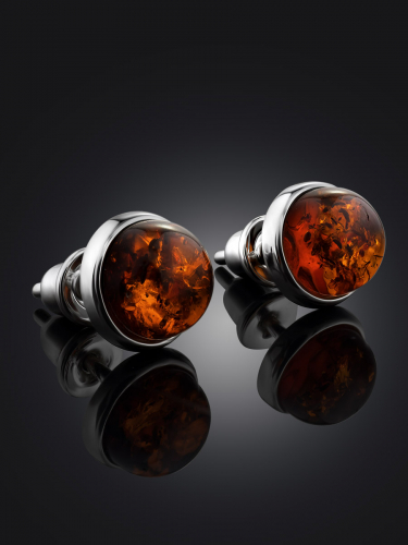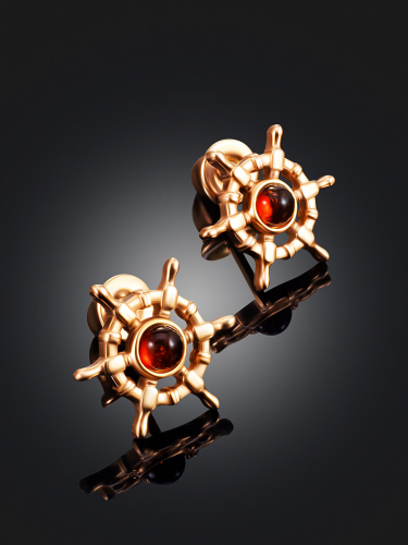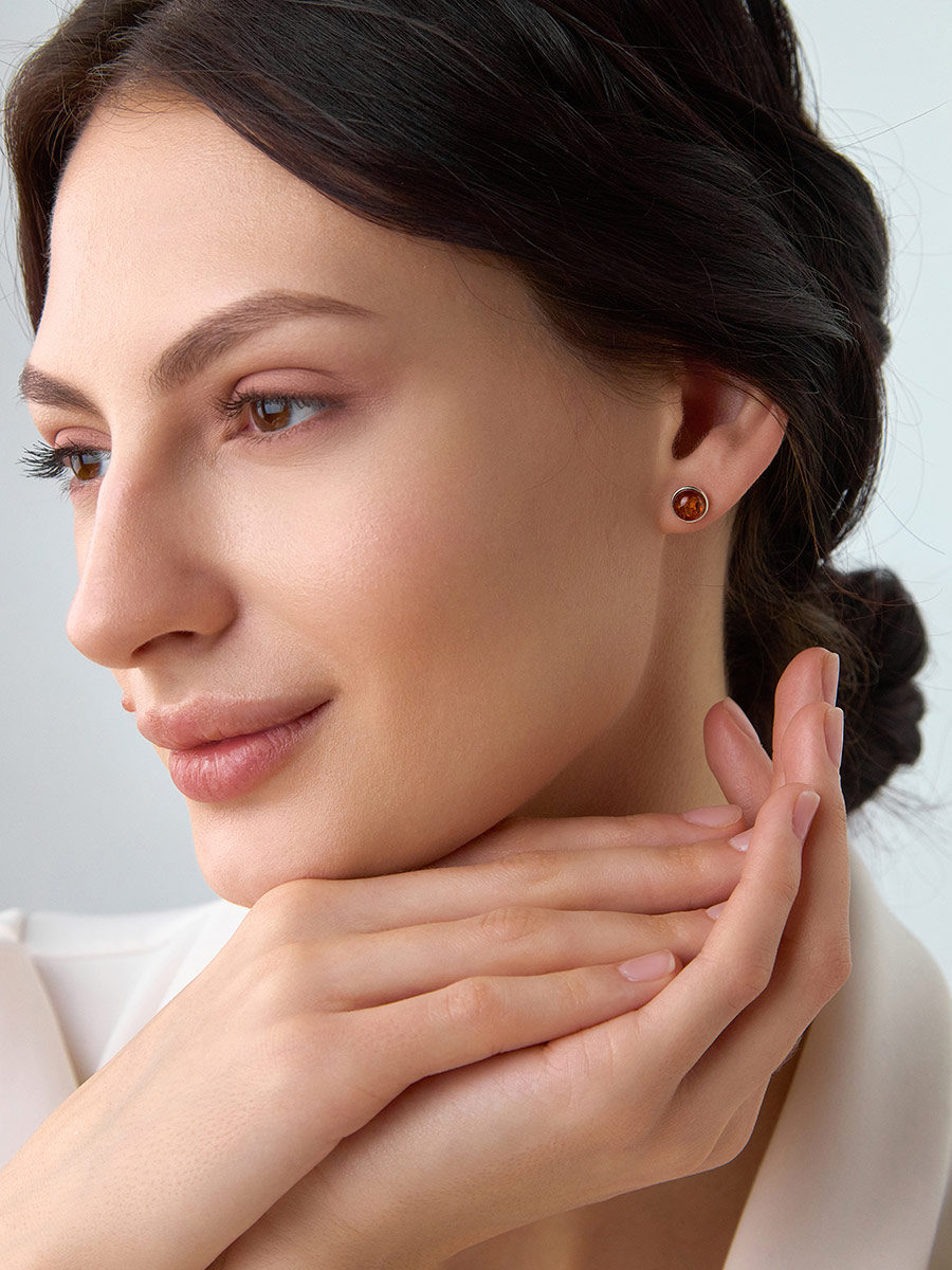 Серьги-пусеты со вставками из натурального балтийского янтаря «Ягодка коньячная»