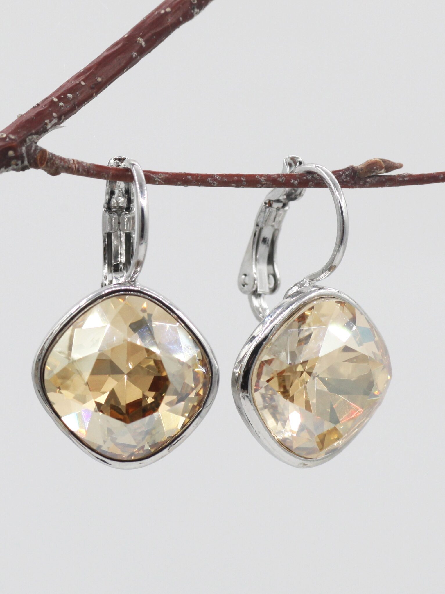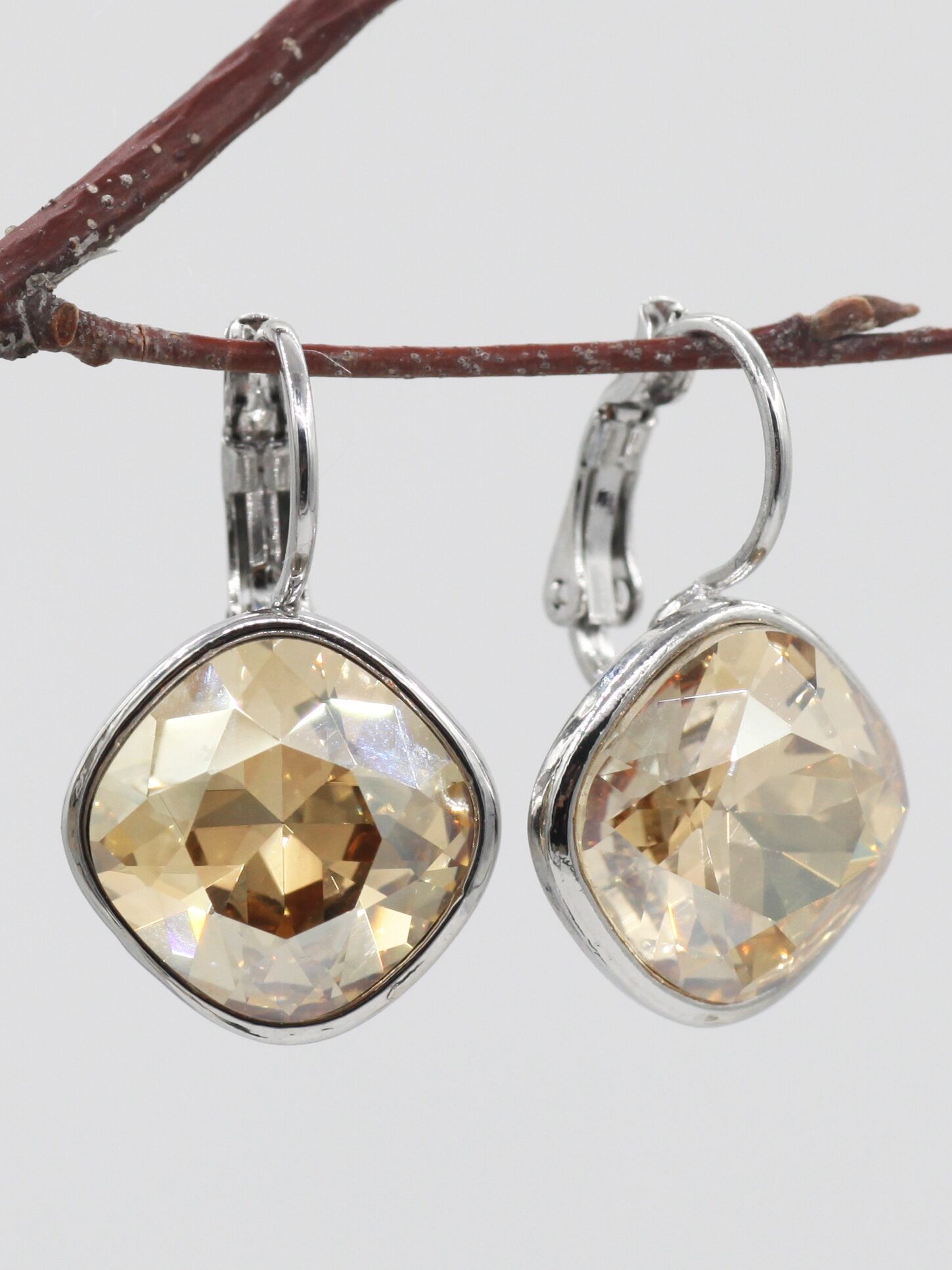 Красивые серьги с благородными кристаллами из специального гипоаллергенного ювелирного сплава, который покрыт золотом или устойчивым родиевым покрытием, предотвращающим раздражение кожных покровов.