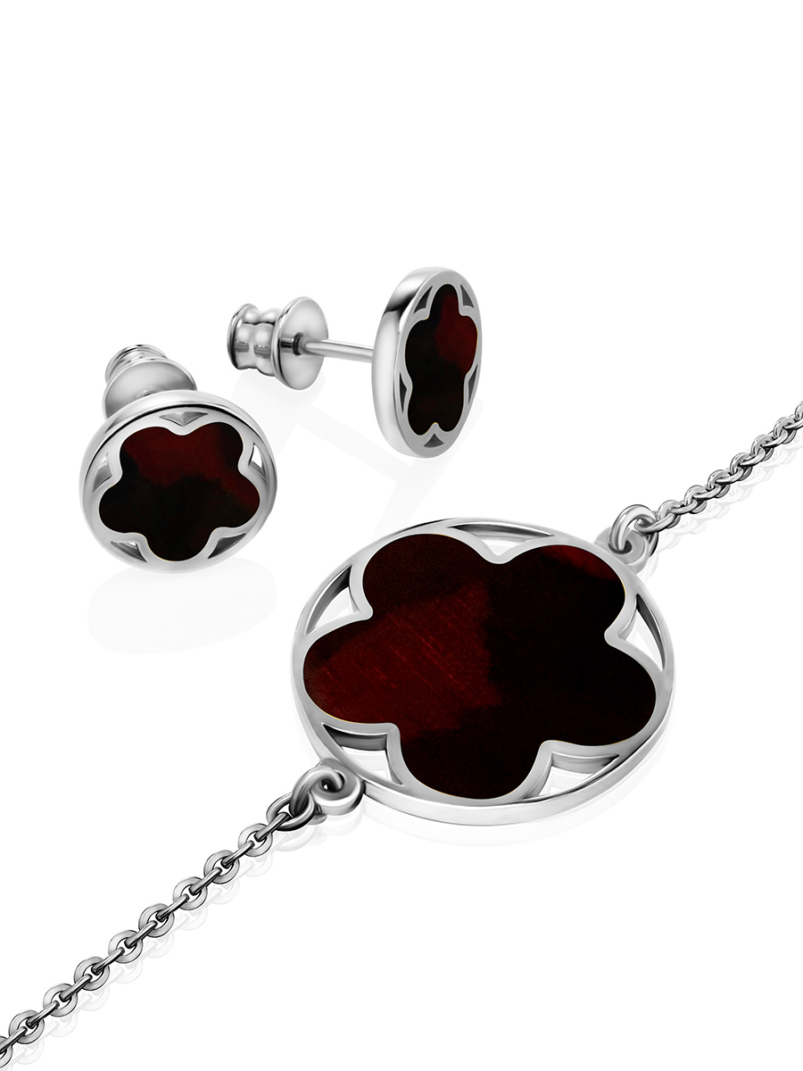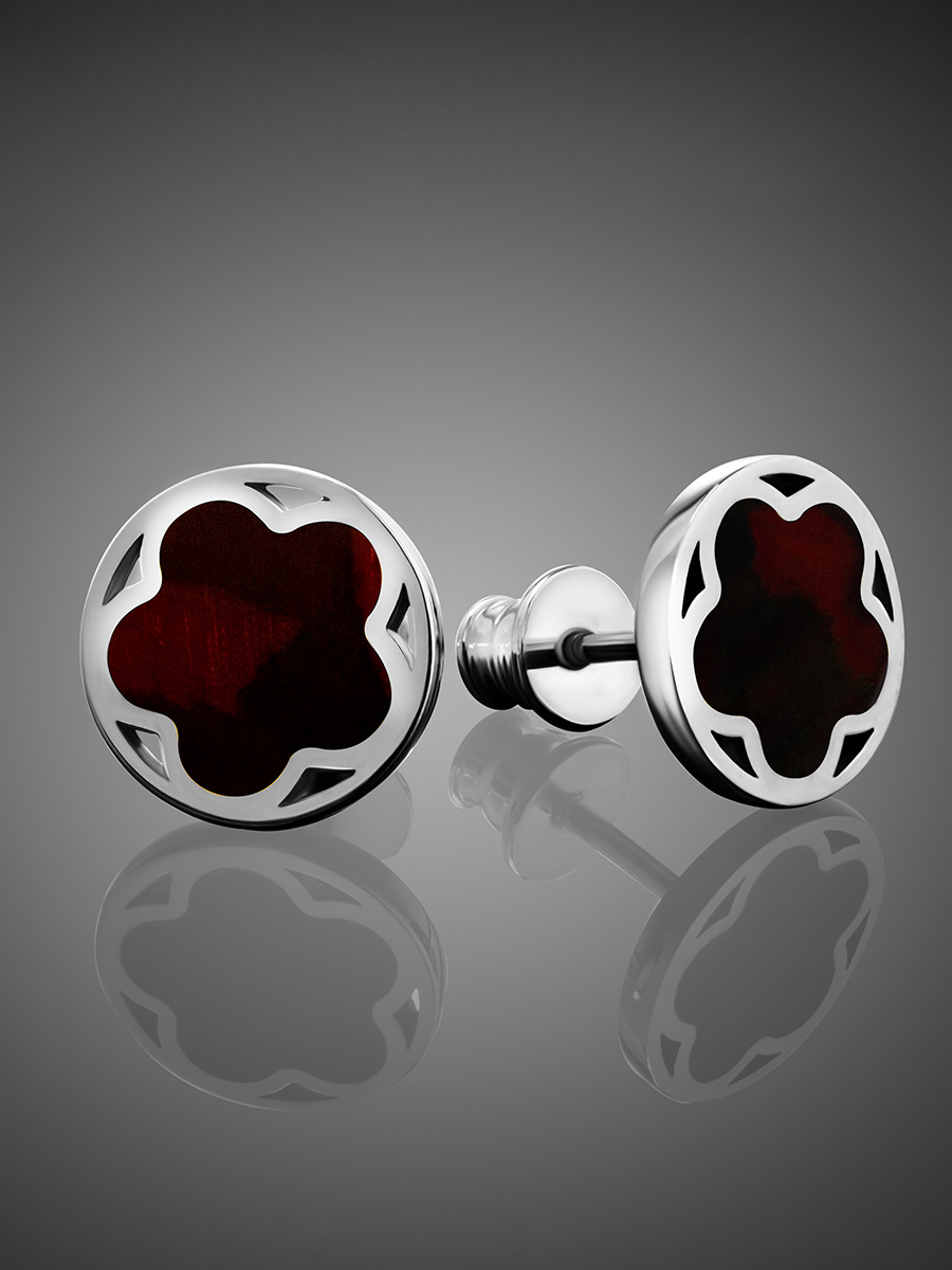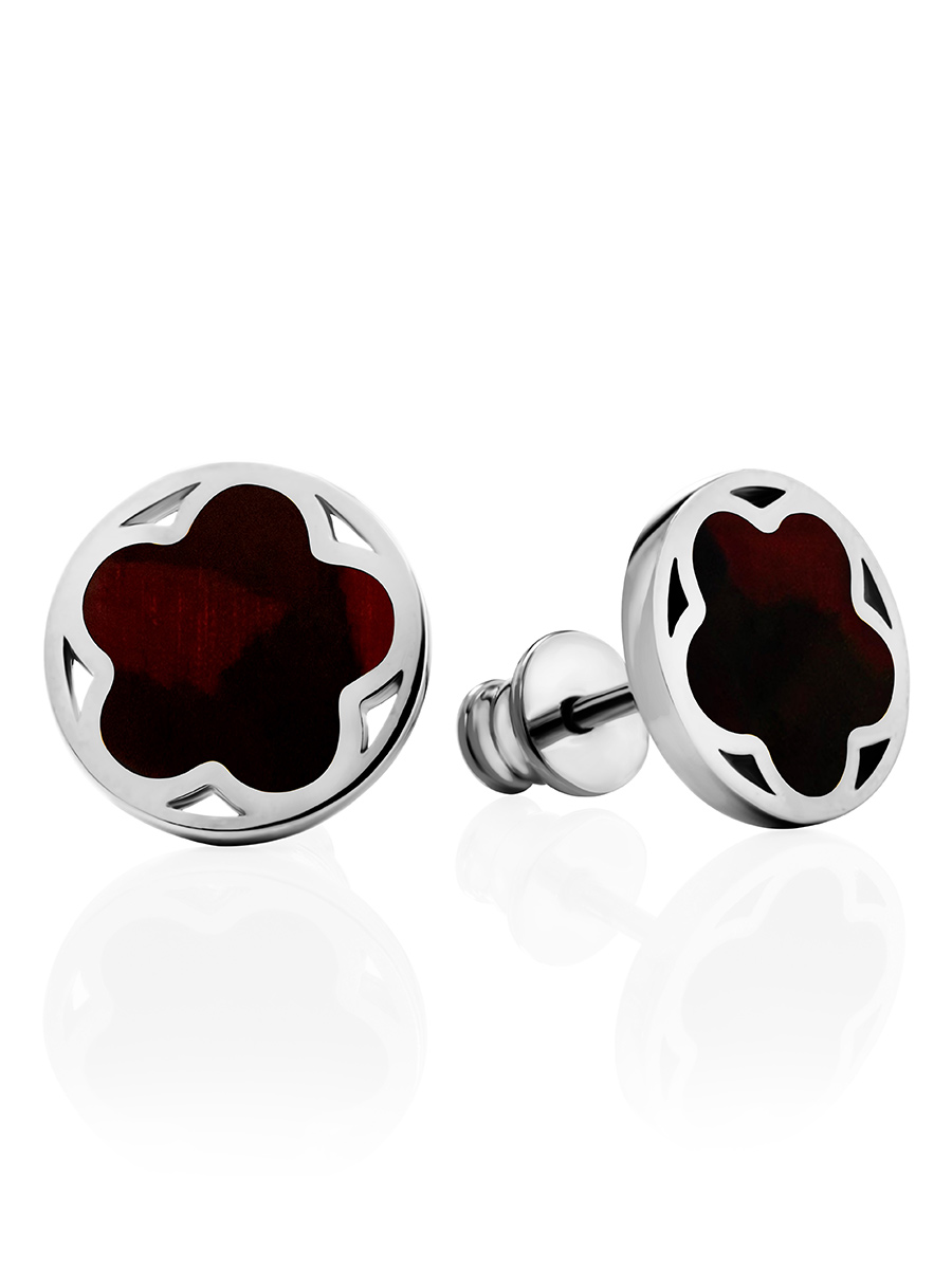 Серьги с замочками-гвоздиками «Монако». Янтарь® из серебра и тёмно-вишнёвого янтаря