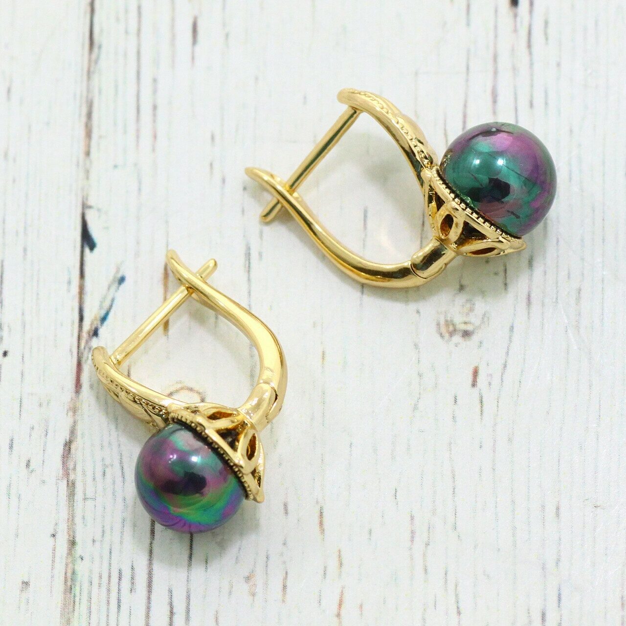 Красивые серьги из специального гипоаллергенного ювелирного сплава, который покрыт золотом или устойчивым родиевым покрытием, предотвращающим раздражение кожных покровов.