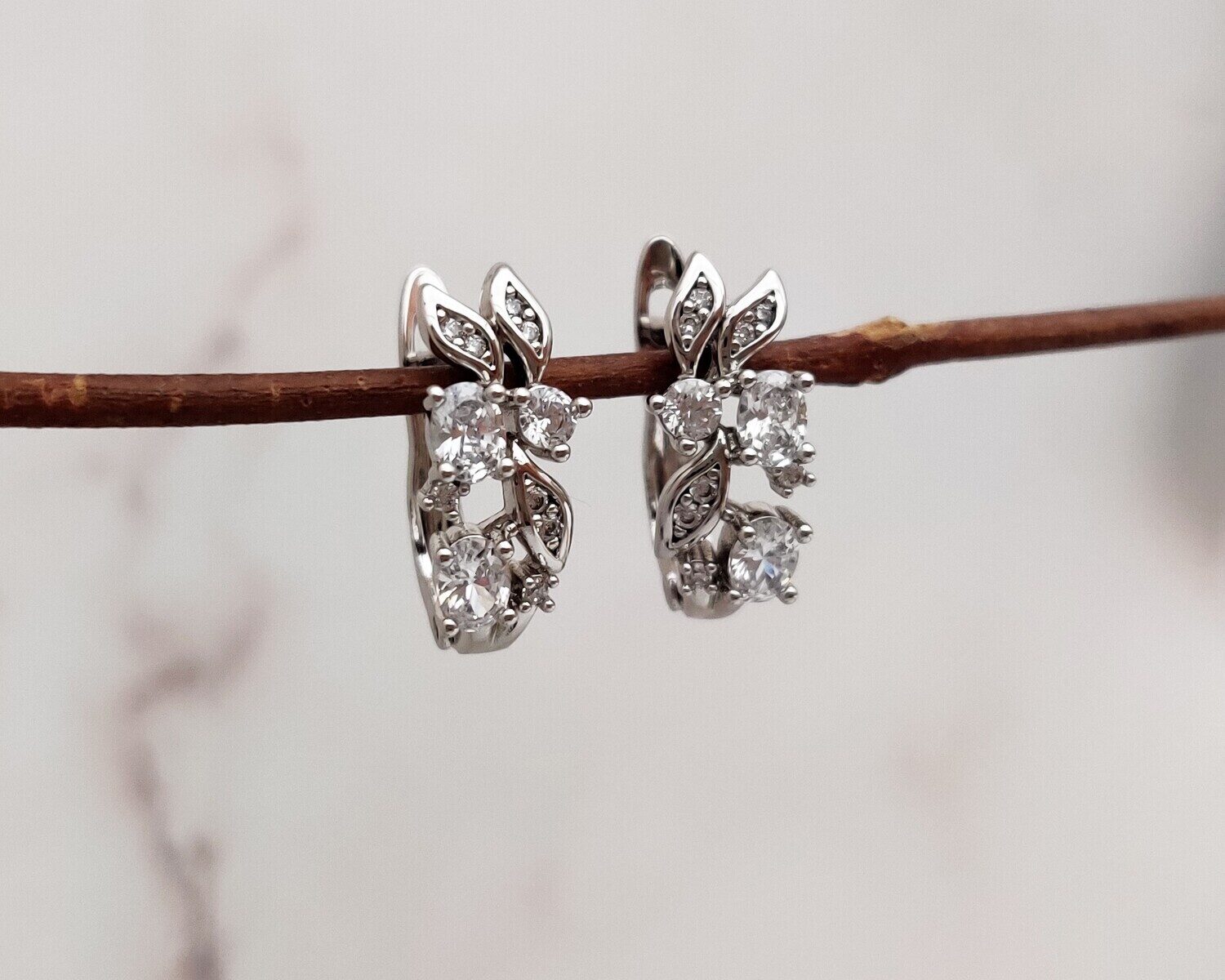 Красивые серьги с благородными цирконами изготовлены из специального гипоаллергенного ювелирного сплава