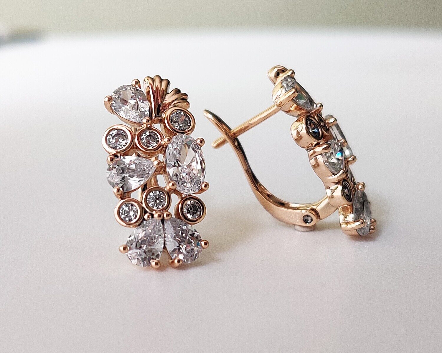 Красивые серьги с благородными цирконами изготовлены из специального гипоаллергенного ювелирного сплава