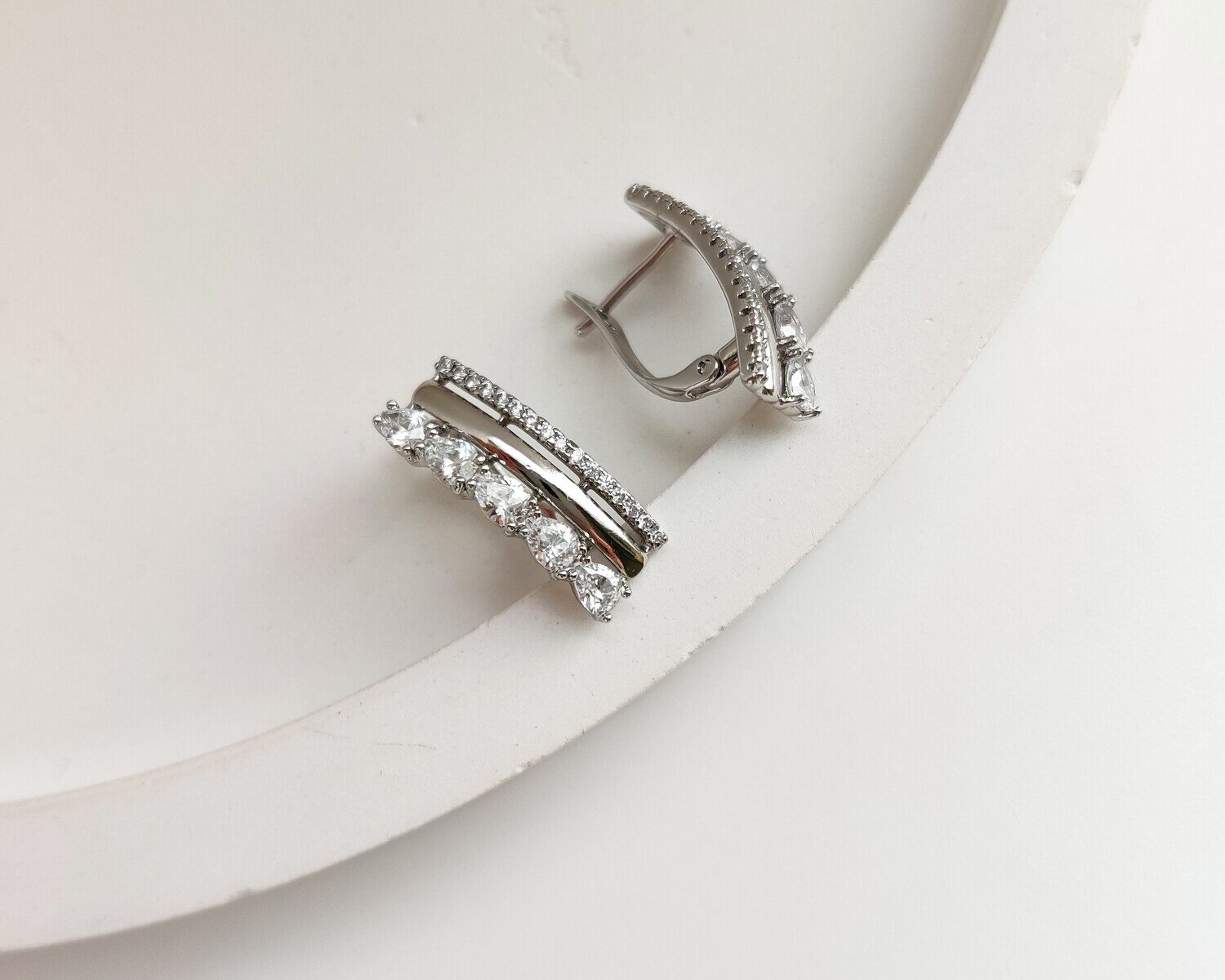 Красивые серьги с благородными цирконами изготовлены из специального гипоаллергенного ювелирного сплава