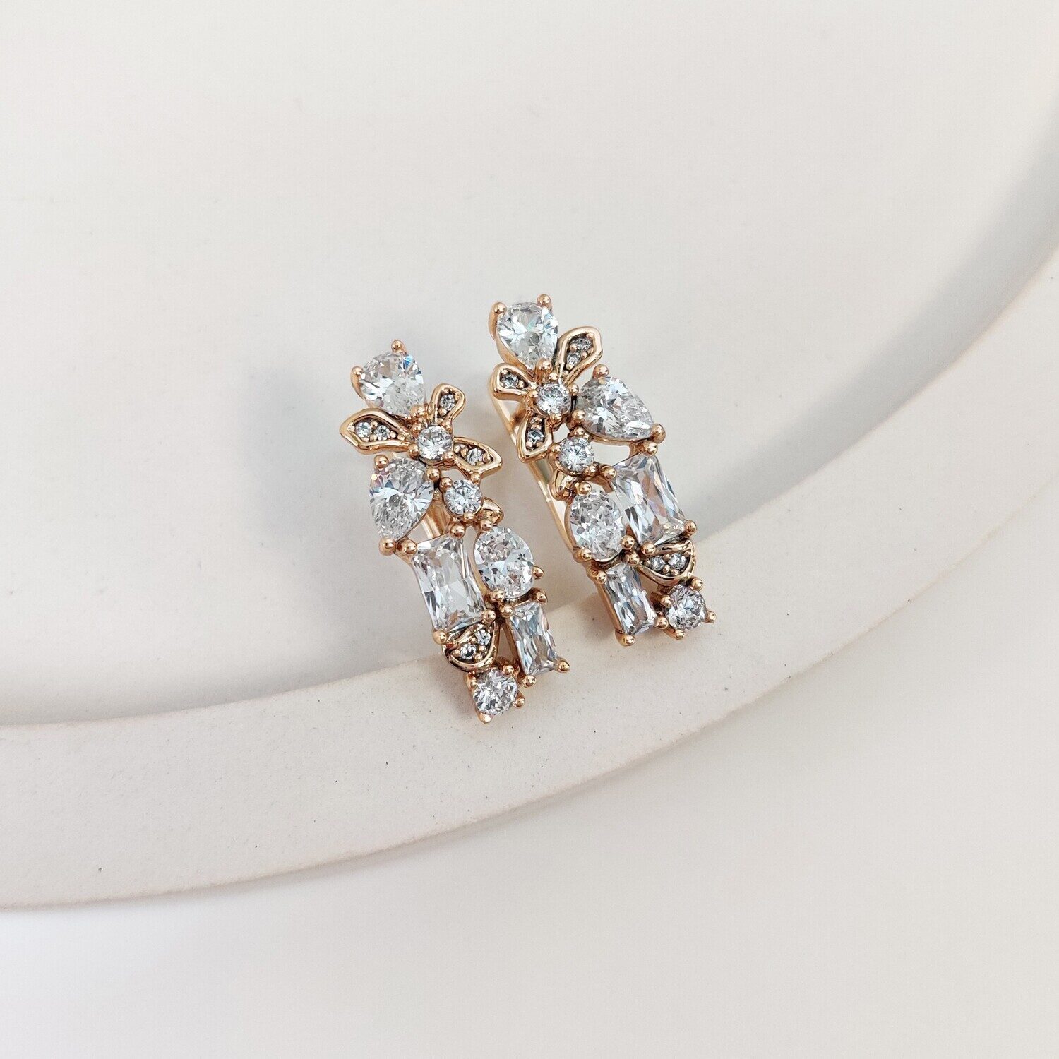 Красивые серьги  с благородными цирконами изготовлены из специального гипоаллергенного ювелирного сплава