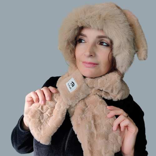 Шапка-шарф с ушками и шарфик