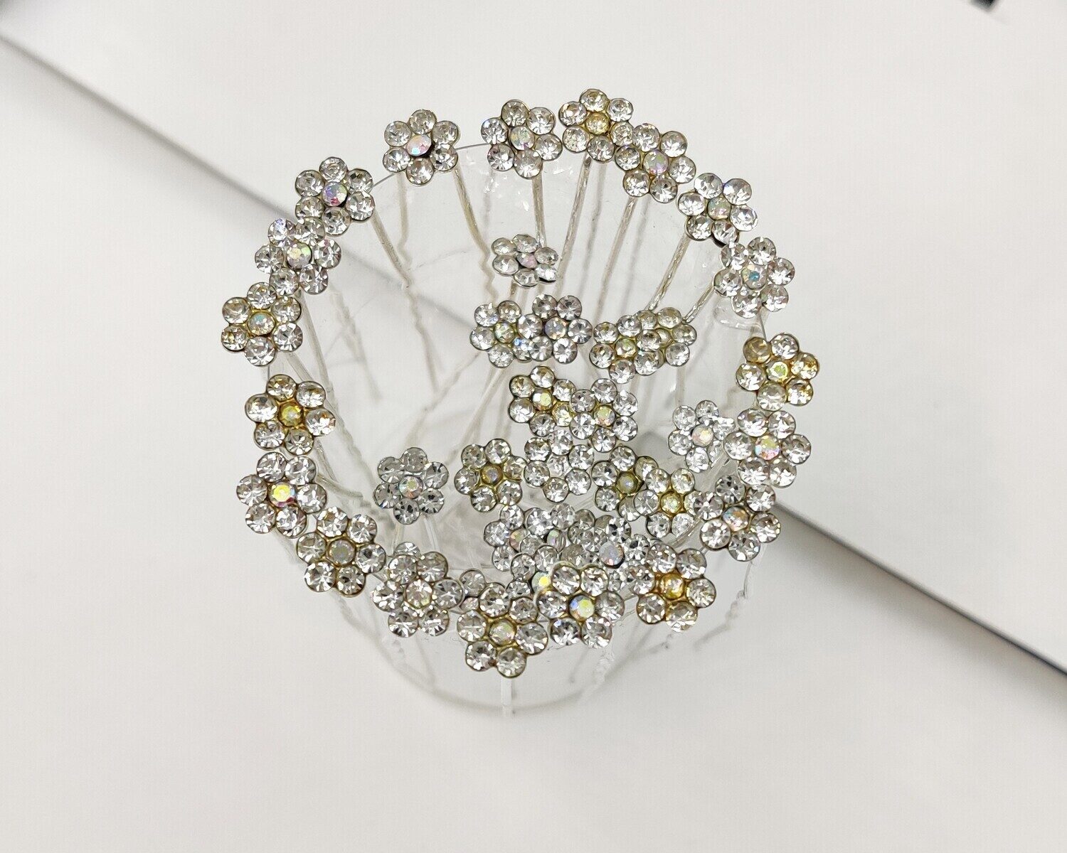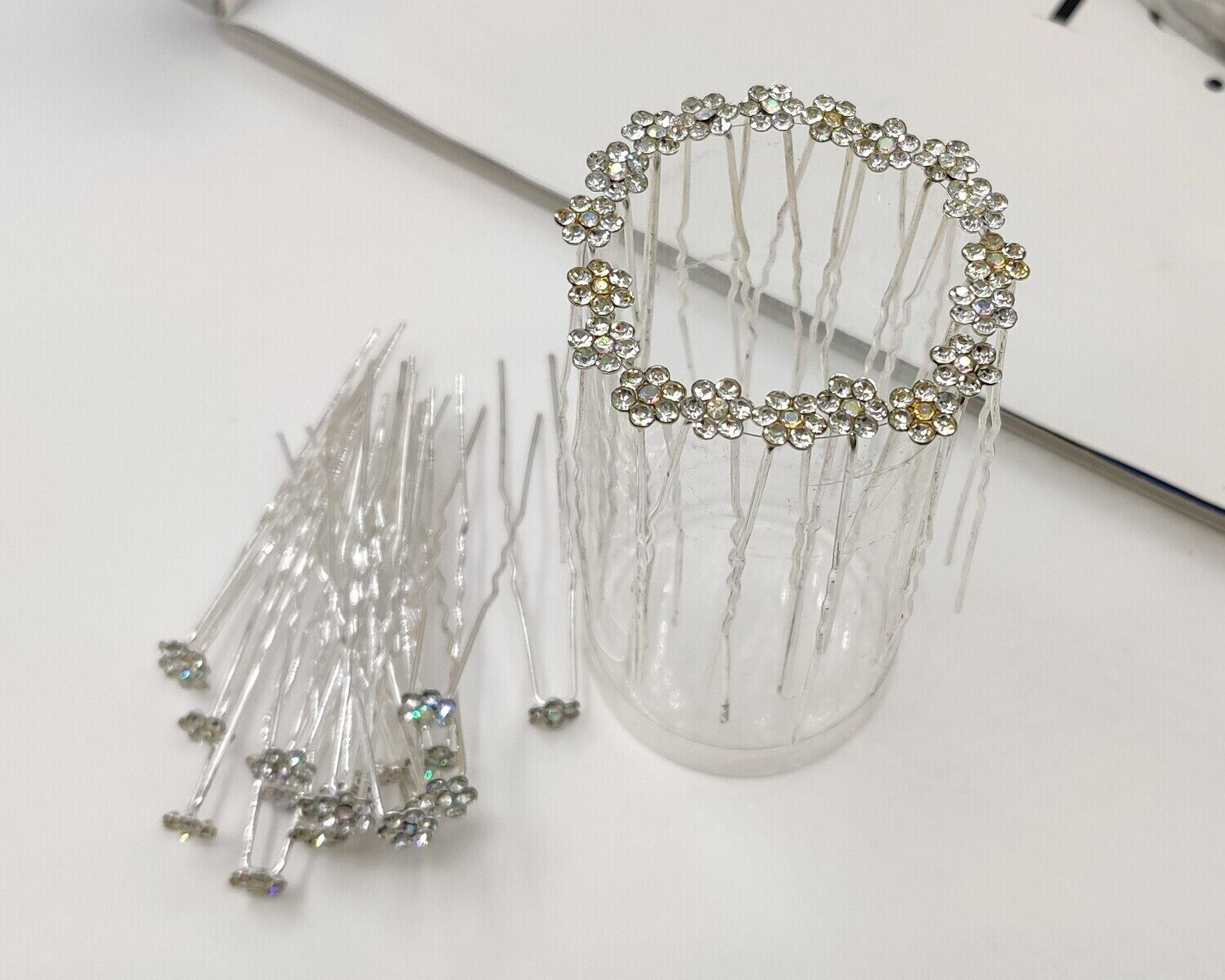 Красивая шпилька легко изменит Ваш образ. Надежная легкая прочная , удобная сохранит Ваши волосы и прекрасно сформирует и удержит прическу. В упаковке 20 шт, высота 7 см, диаметр цветка 1,2 см.