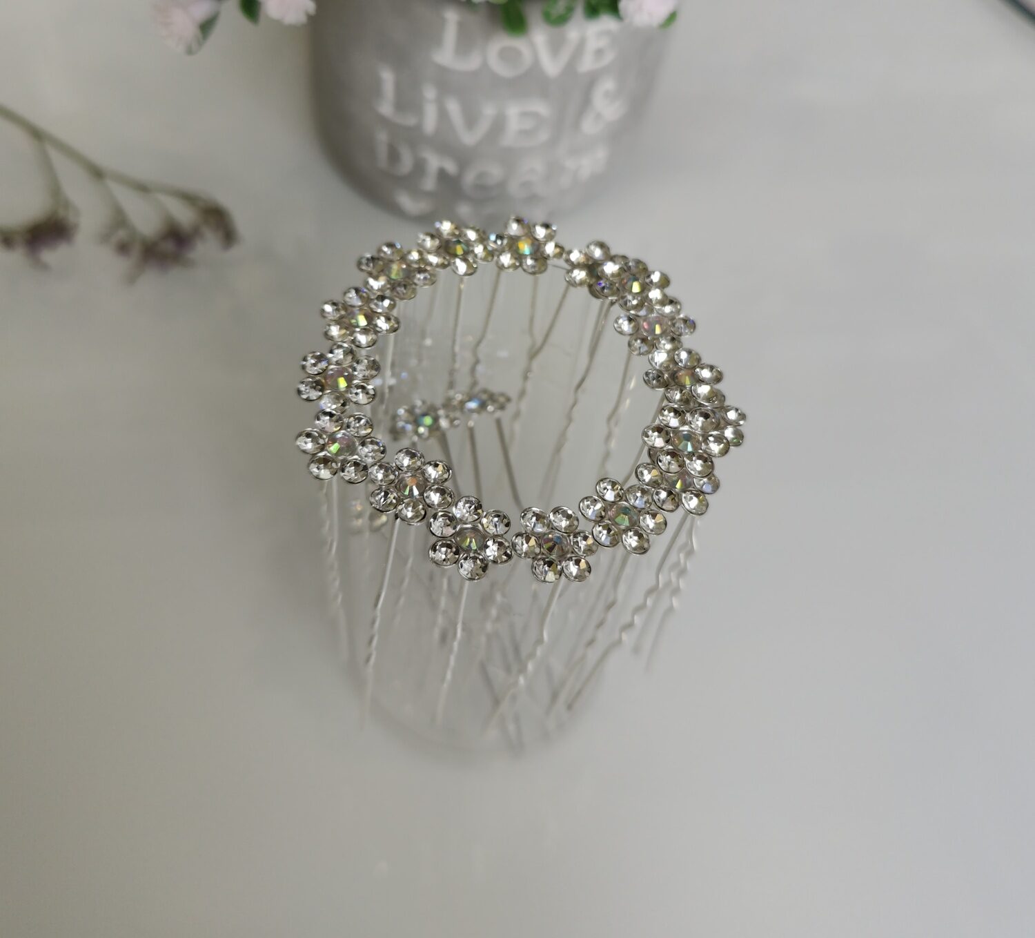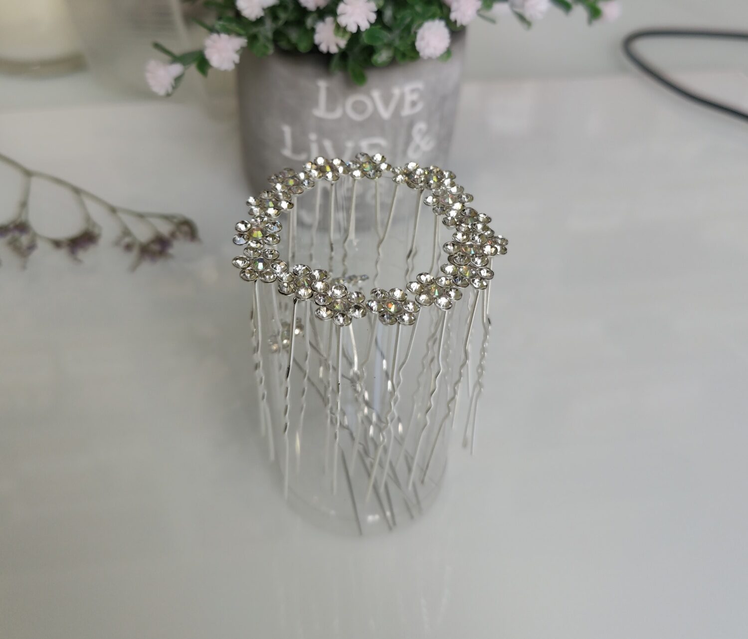 Красивая шпилька легко изменит Ваш образ. Надежная легкая прочная , удобная сохранит Ваши волосы и прекрасно сформирует и удержит прическу. В упаковке 20 шт, высота 6,5 см, диаметр цветка 1 см.
