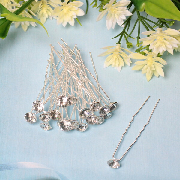 Шпильки для волос в тубе 20шт "Hair Beauty", стразик, микс 4 цвета, d-0.8см