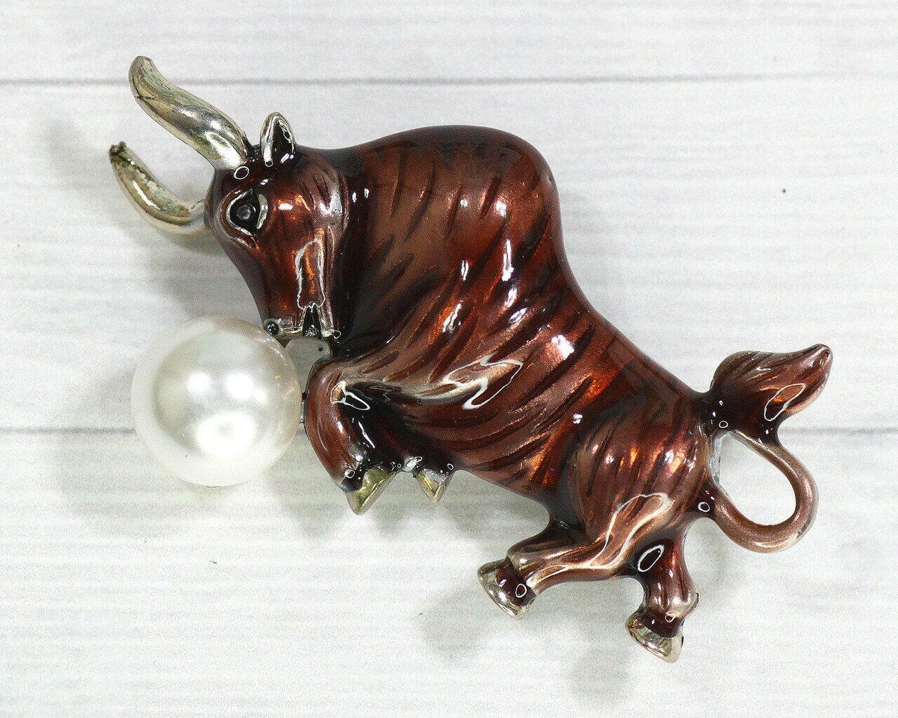 Символ Нового Года Брошь Брошь удачно дополнит ваш образ, придаст ему завершенность и изысканный шарм. Броши дают возможность для фантазии, с помощью этого маленького аксессуара вы легко и просто сможете превращать повседневное платье в вечернее, а любой свой простой наряд – в модный и стильный. Броши изготовлены из ювелирного сплава,покрытого родием,горячей эмалью, покрытием под золото.