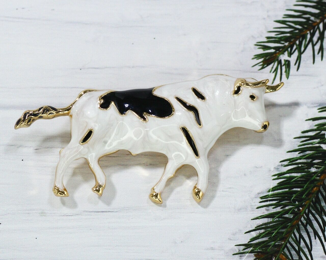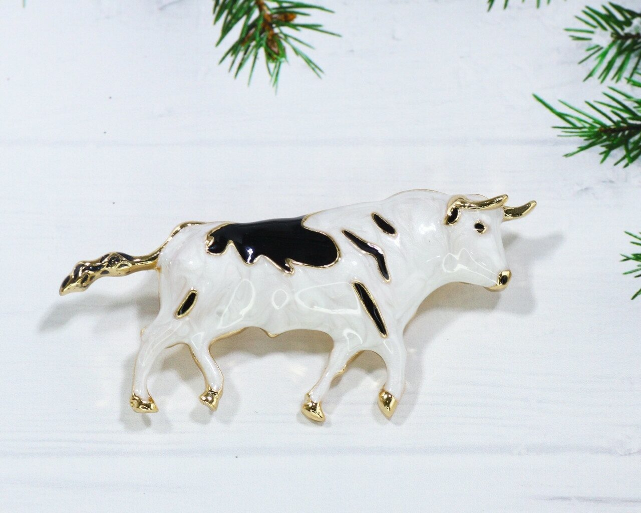 Символ Нового Года Брошь Брошь удачно дополнит ваш образ, придаст ему завершенность и изысканный шарм. Броши дают возможность для фантазии, с помощью этого маленького аксессуара вы легко и просто сможете превращать повседневное платье в вечернее, а любой свой простой наряд – в модный и стильный. Броши изготовлены из ювелирного сплава,покрытого родием,горячей эмалью, покрытием под золото.