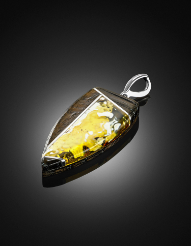 Стильная подвеска «Индонезия» из натурального янтаря и дерева