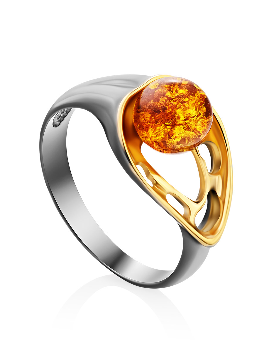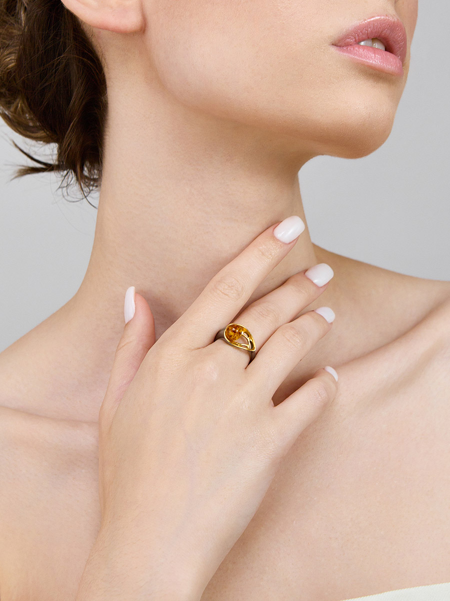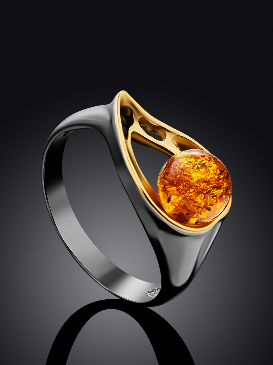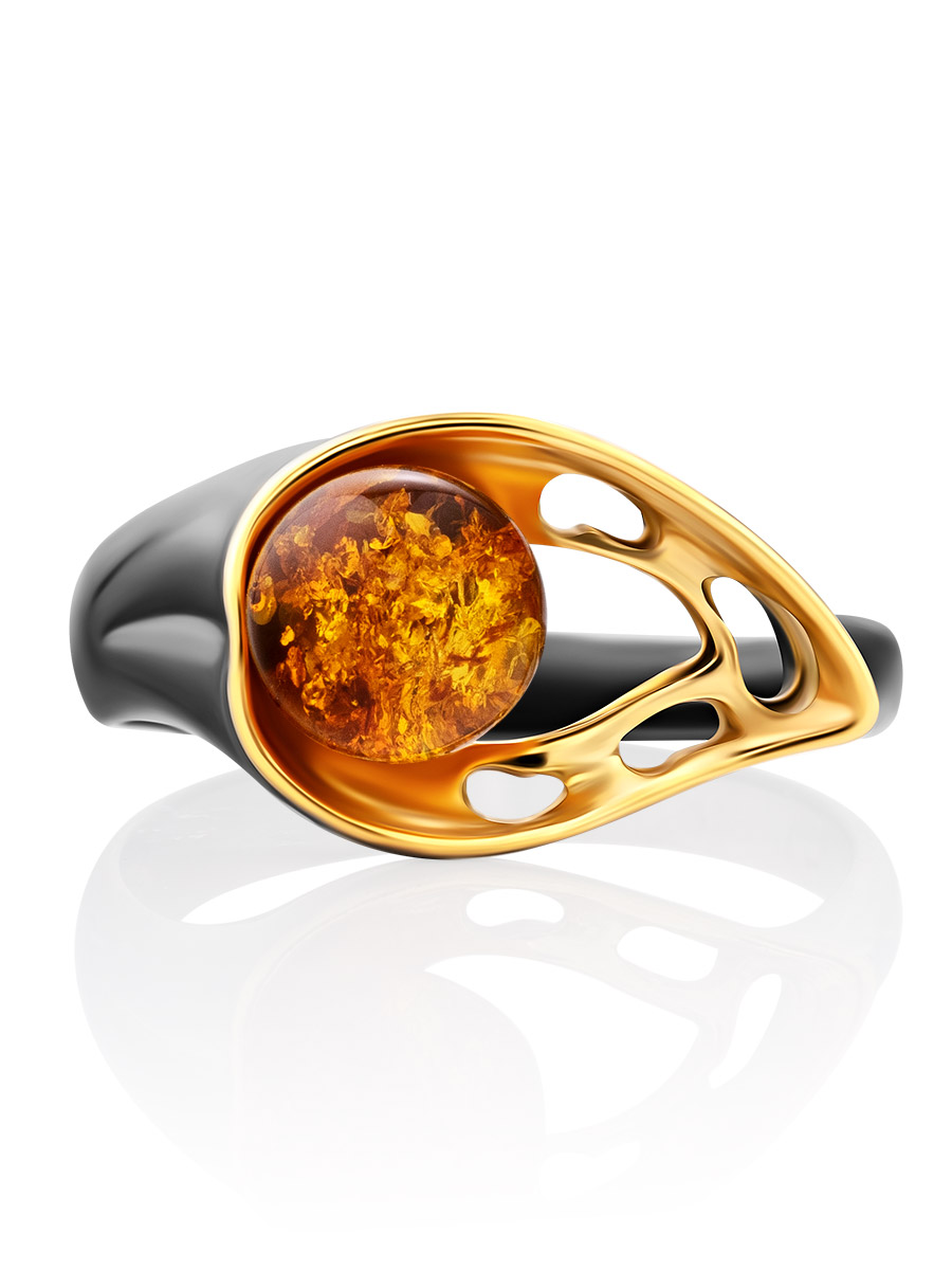 Стильное чернёное кольцо с золотистым янтарём «Мадагаскар»