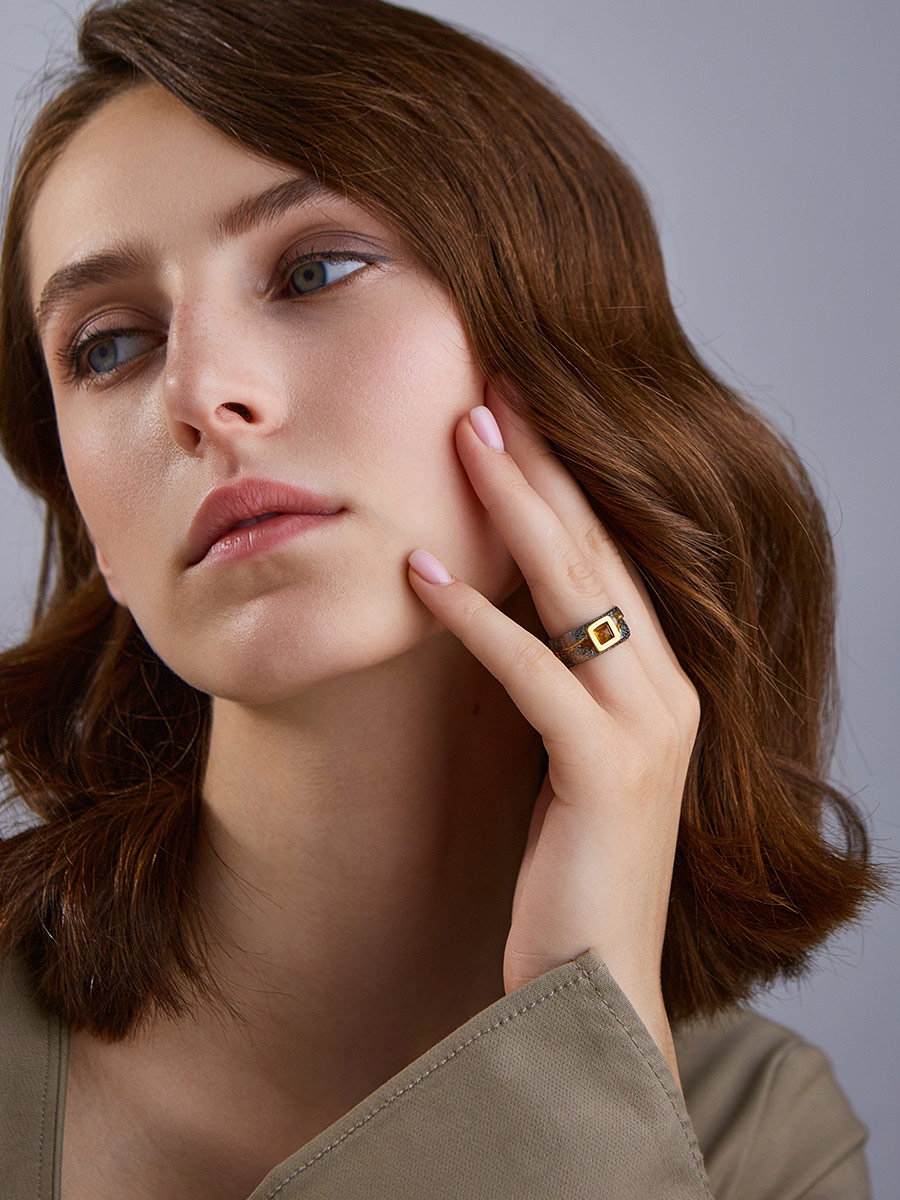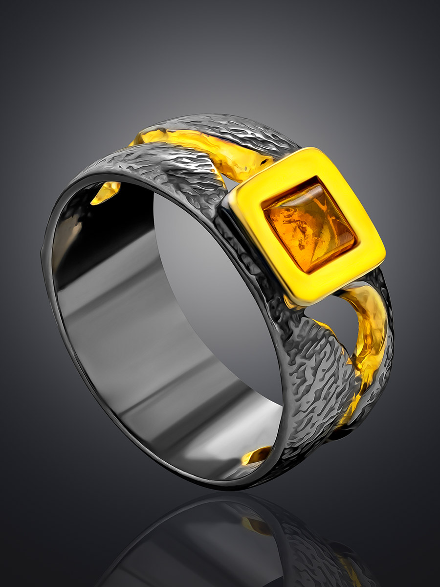 Стильное кольцо из янтаря «Претория»