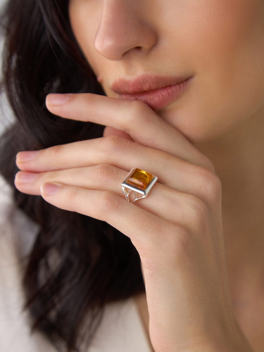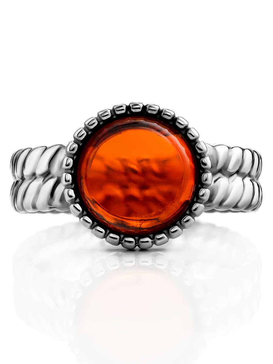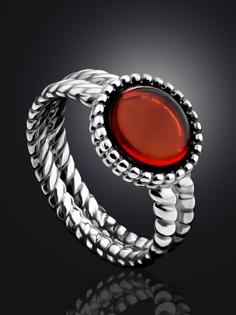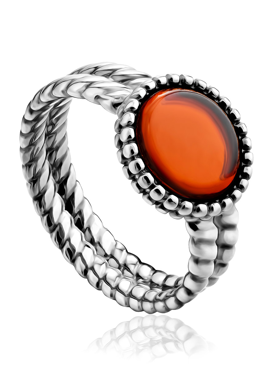 Стильное кольцо «Палестрина» из янтаря вишнёвого цвета