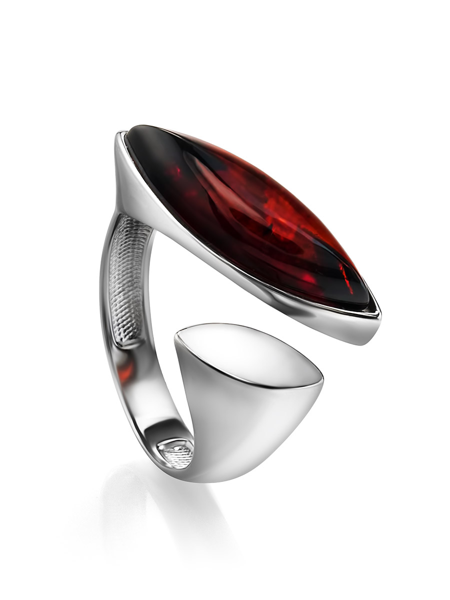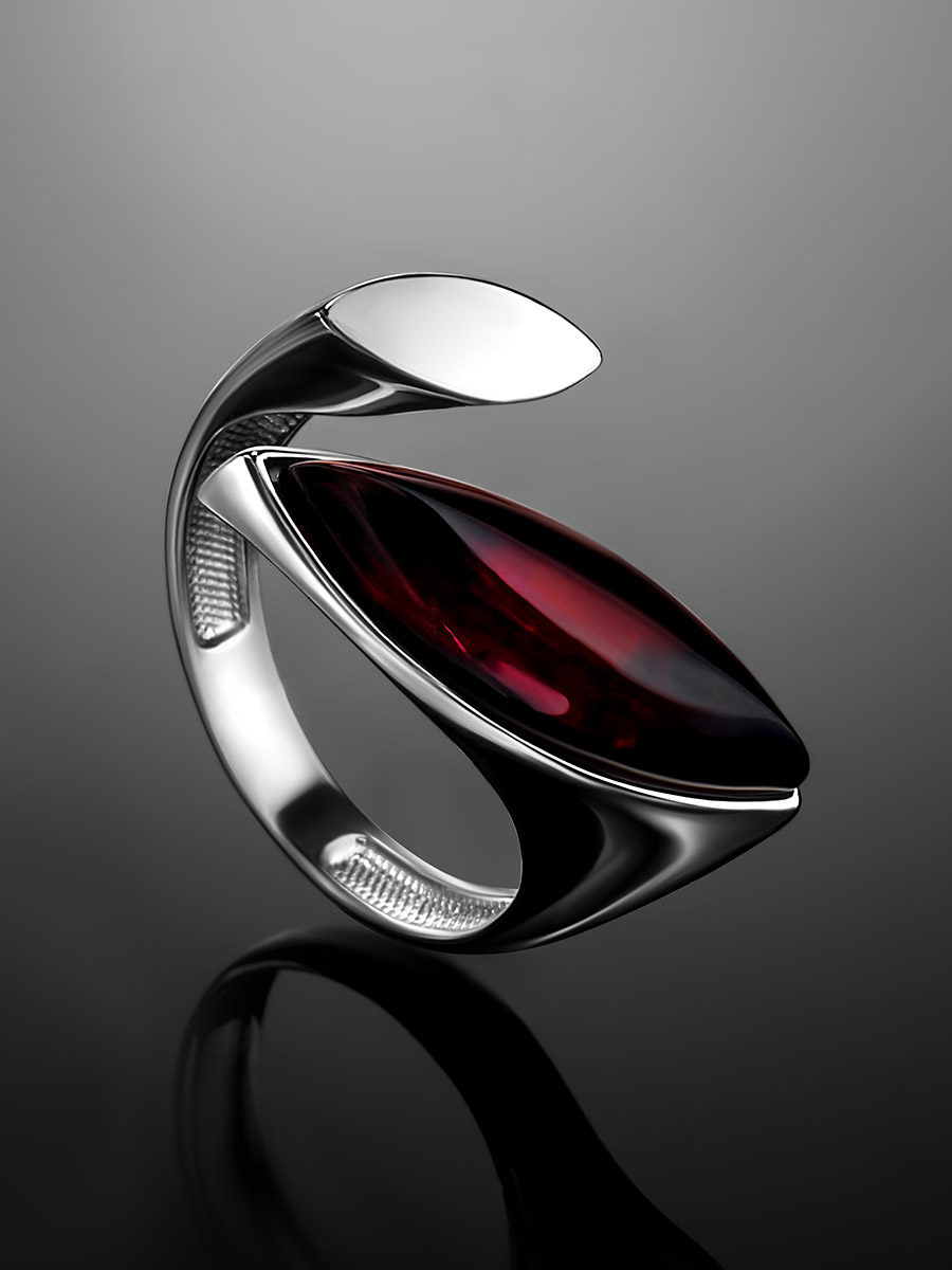 Стильное кольцо с вишнёвым янтарём «Либерти»