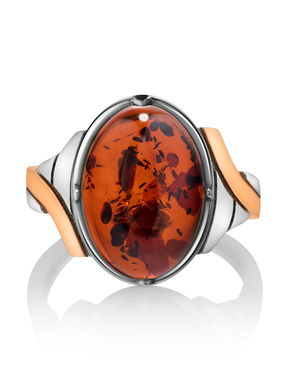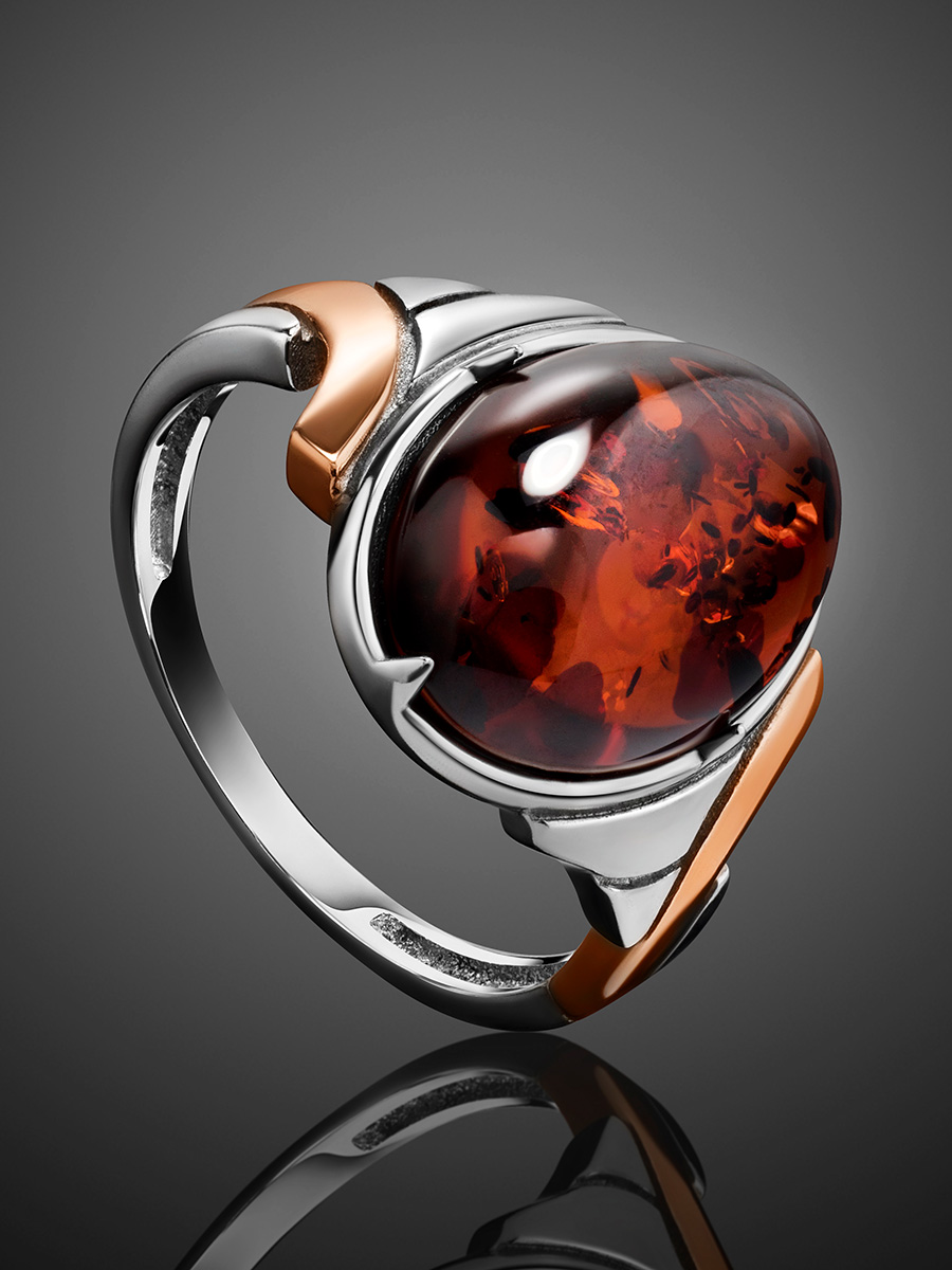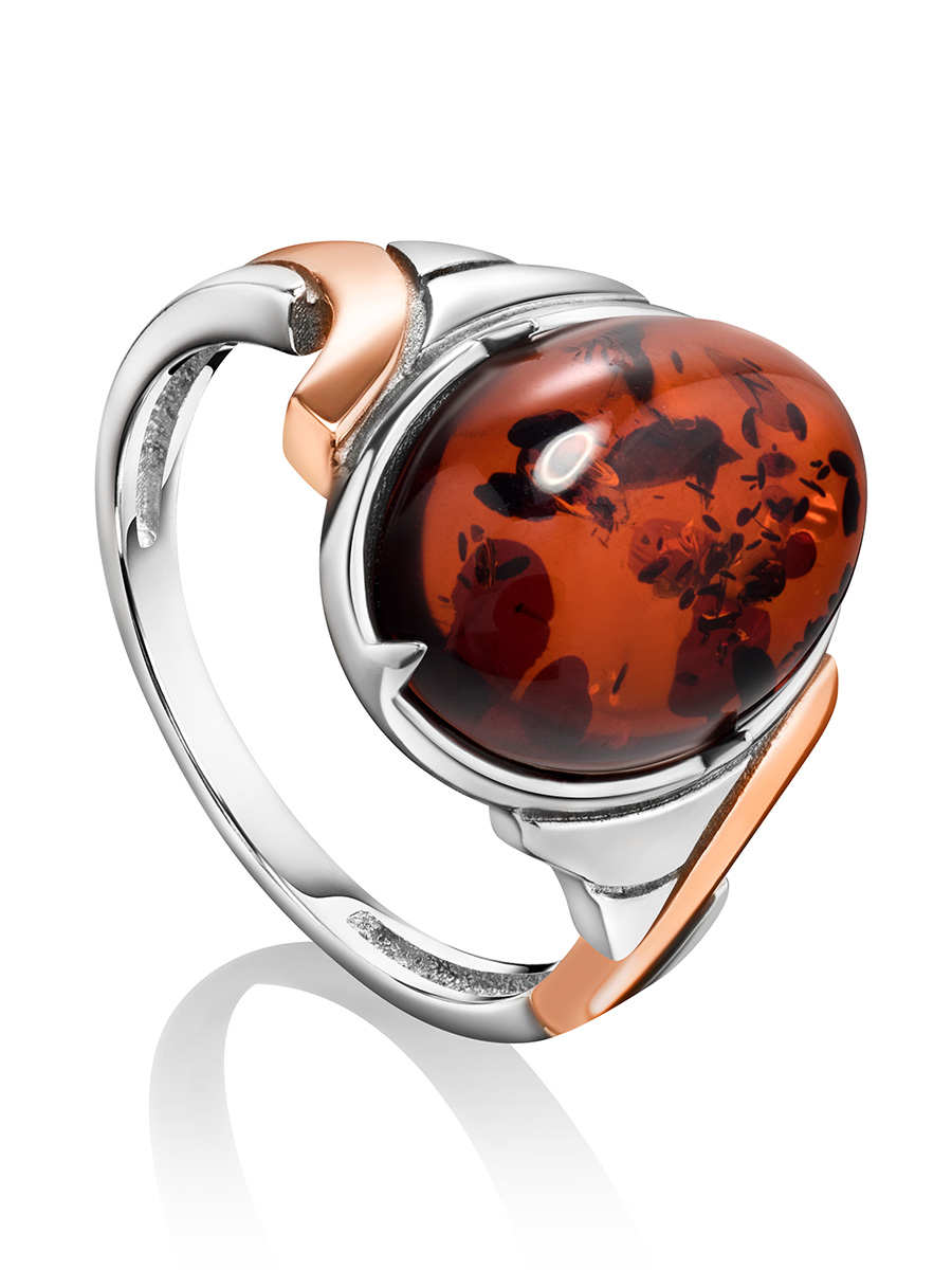 Стильное кольцо с вишнёвым янтарём «Люмьер»