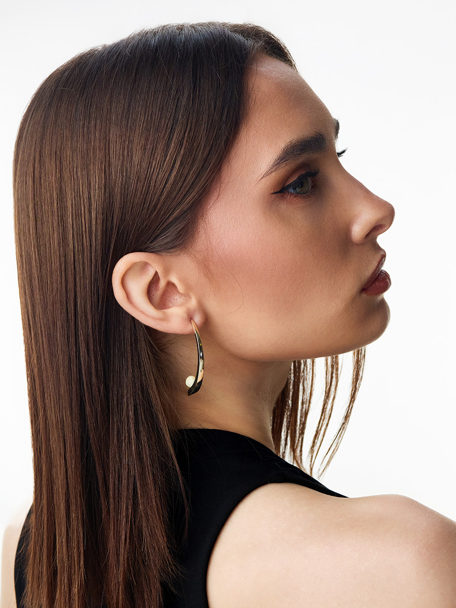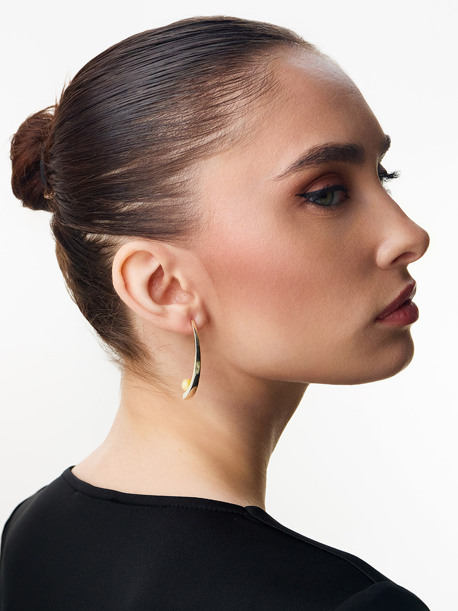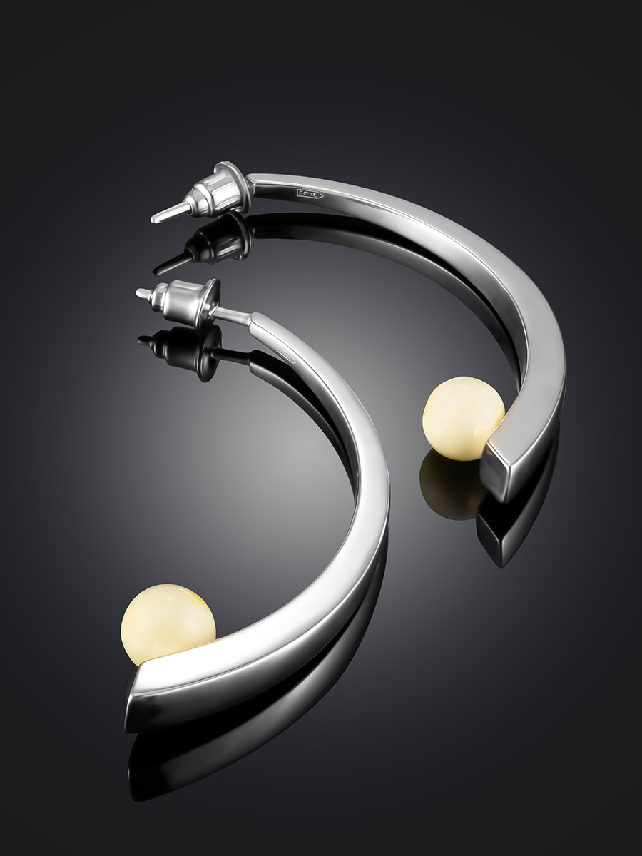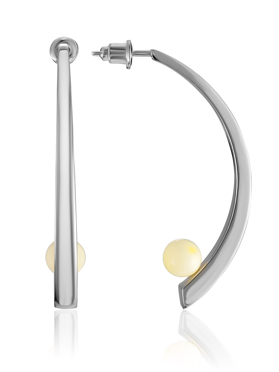 Стильные эффектные серьги-гвоздики «Лея» с янтарными вставками