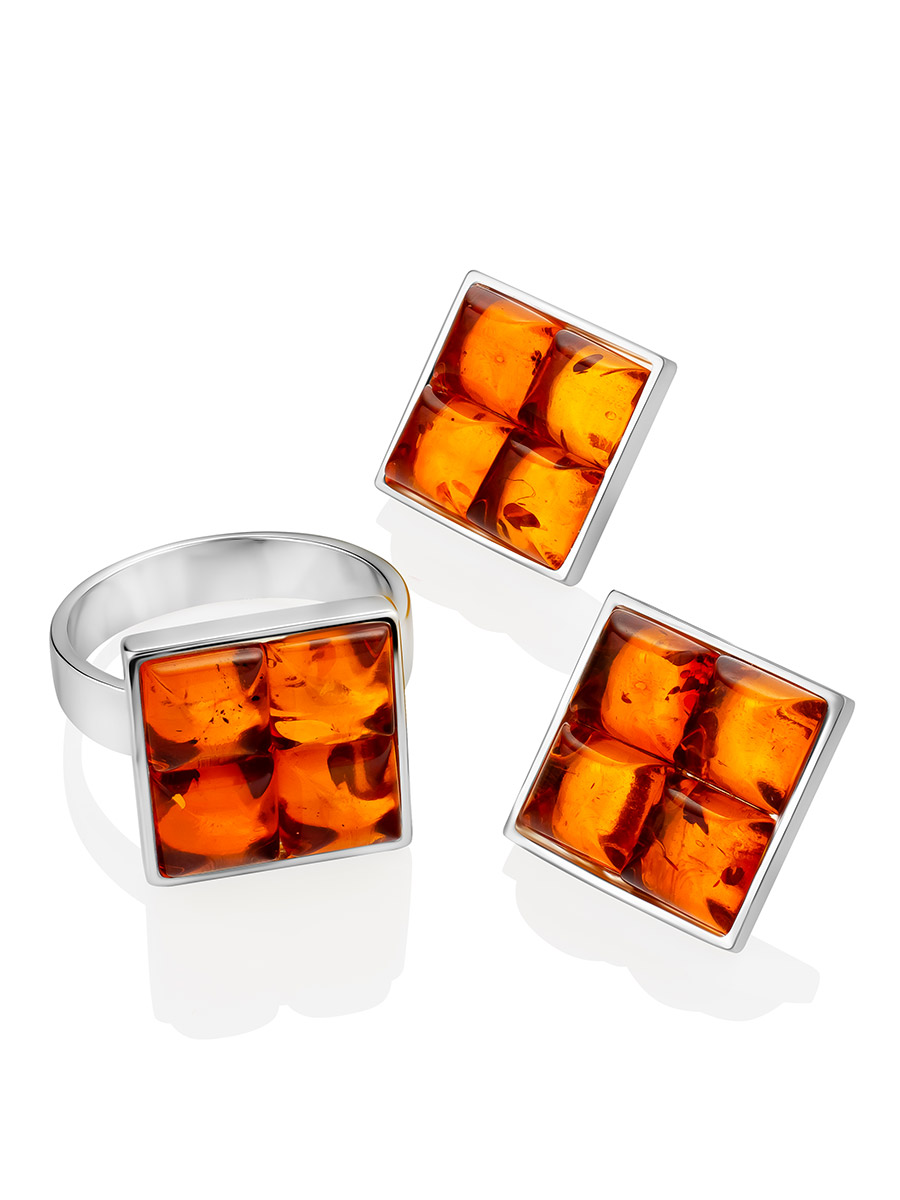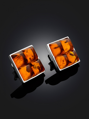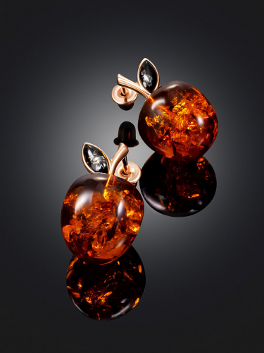 Стильные эффектные серьги с коньячным янтарём «Коломбина»