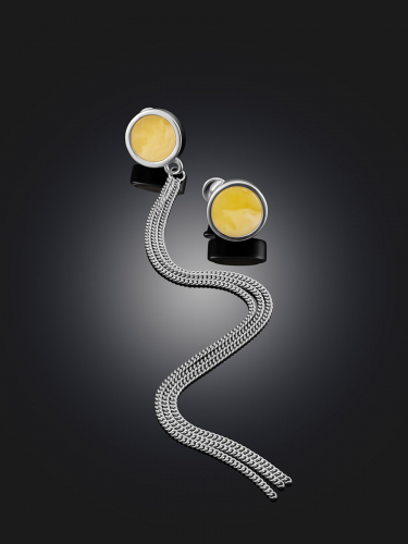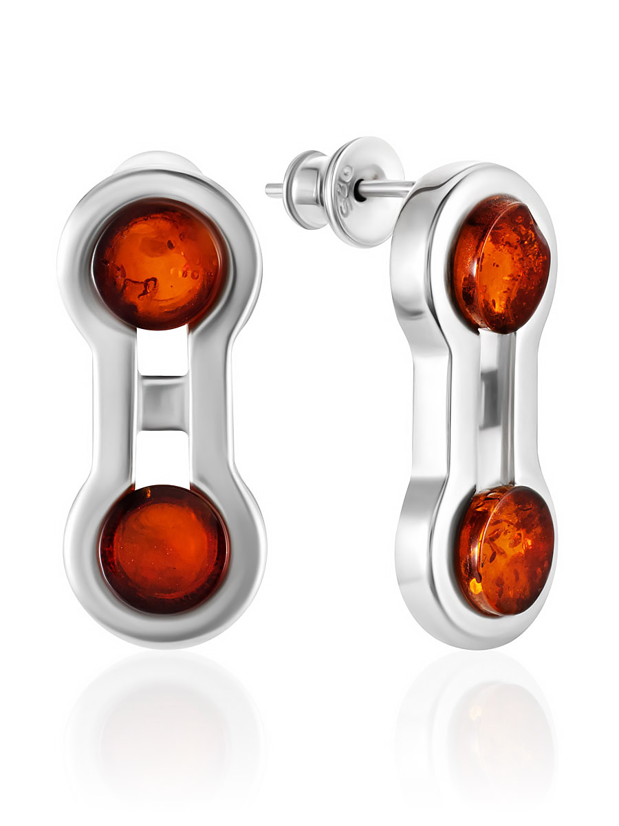 Стильные геометричные серьги-гвоздики с натуральным янтарём London