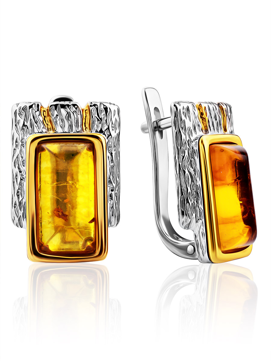 Стильные серьги «Бубинга» из натурального коньячного янтаря