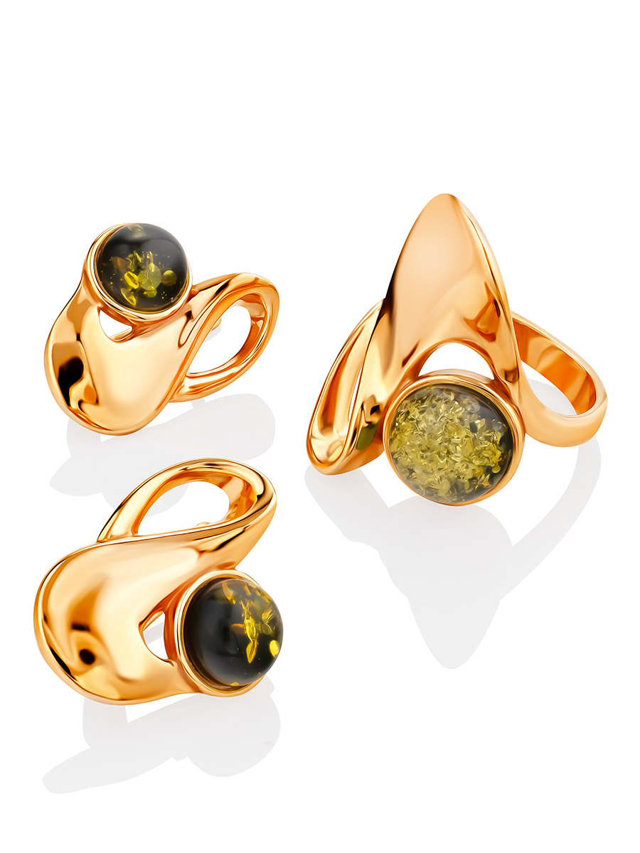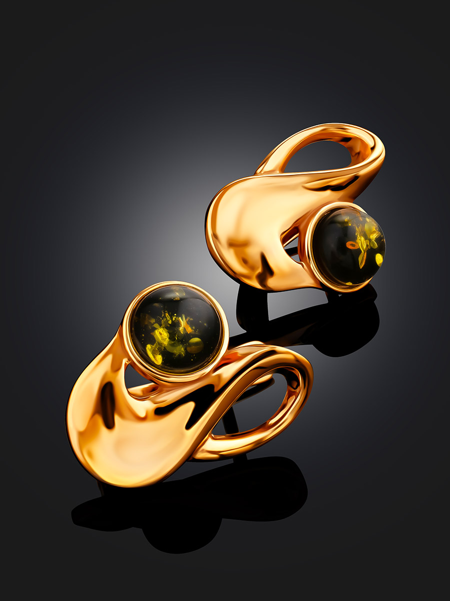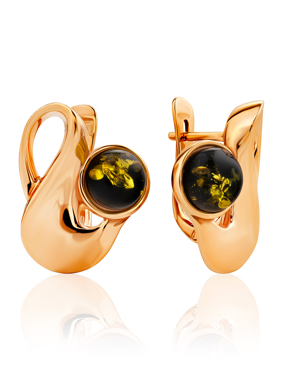 Стильные серьги с янтарём зелёного цвета «Маверикс»
