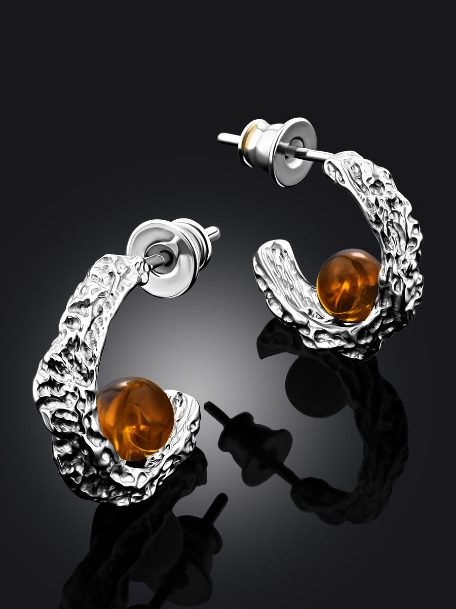 Стильные трендовые серьги с натуральным янтарём Palazzo от ifamore™