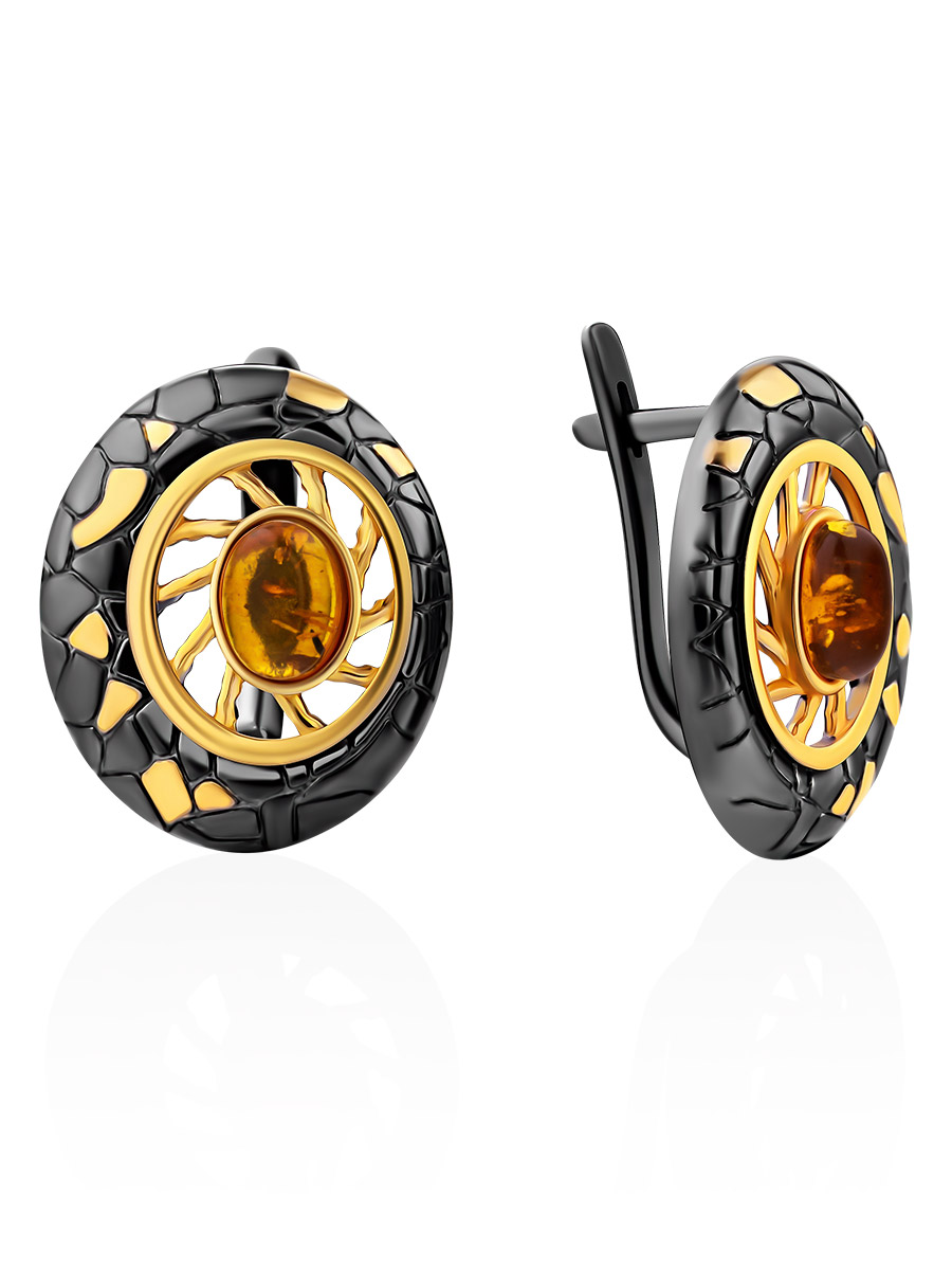 Стильные яркие серьги из натурального янтаря «Донателла»