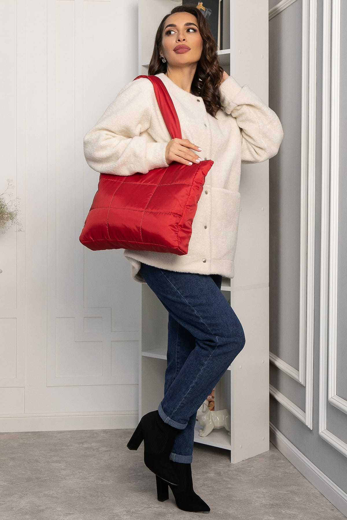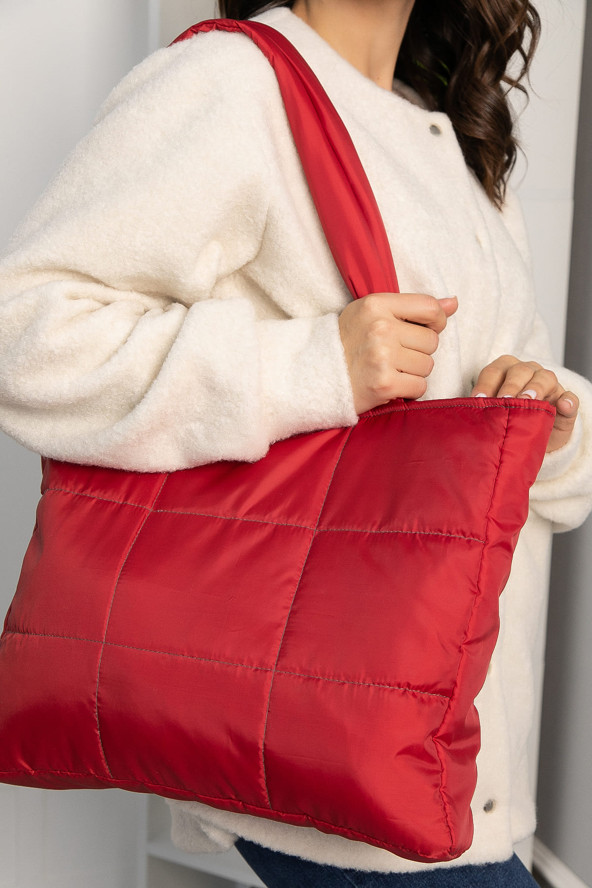 Откройте для себя неповторимую индивидуальность с этим красным стеганым шопером, который сочетает в себе стиль и функциональность. Яркий цвет добавит яркости любому образу. Внутри сумки имеется один карман. Она удобна для ношения в руке, и на плече, что делает её идеальным выбором для повседневных дел.