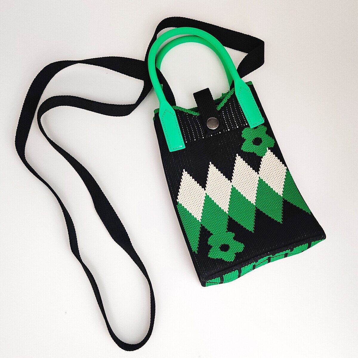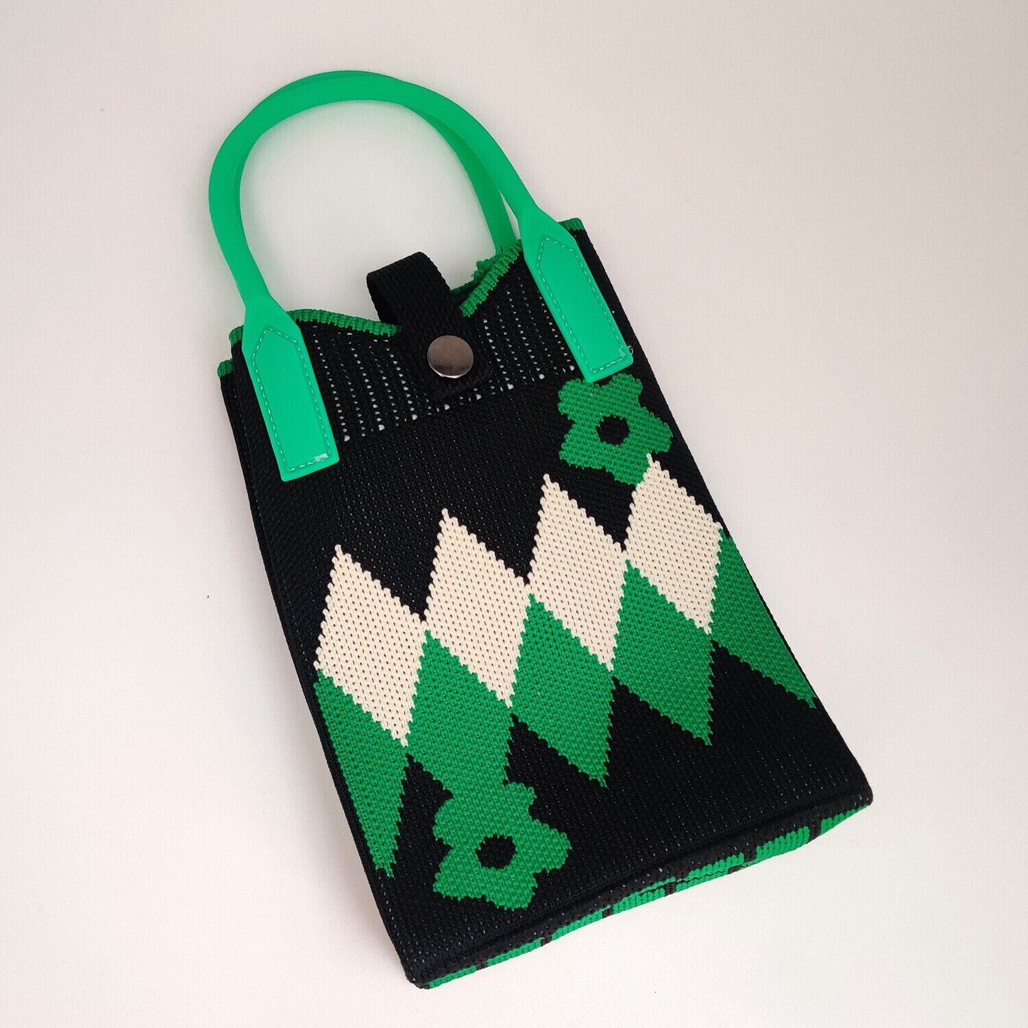 Мини сумочка из плотной вязки для телефона очень удобна для хранения ключей и мелочей.