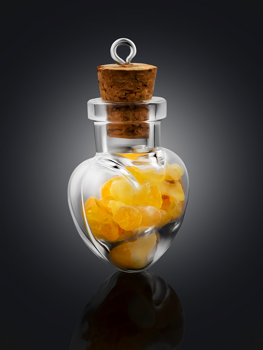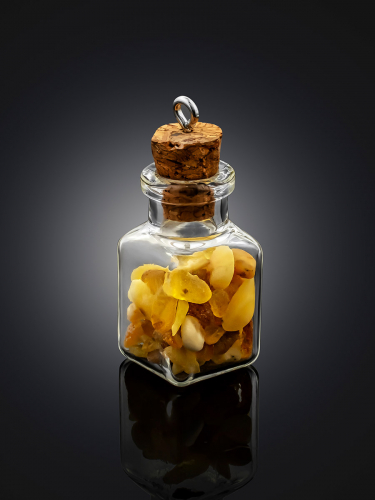 Сувенирная подвеска-бутылочка в форме сердца с натуральным янтарём
