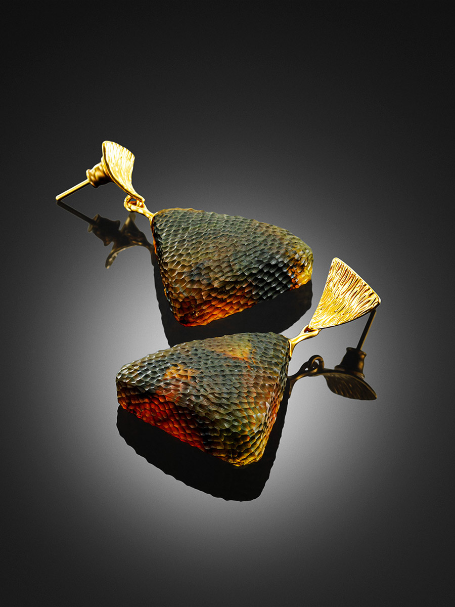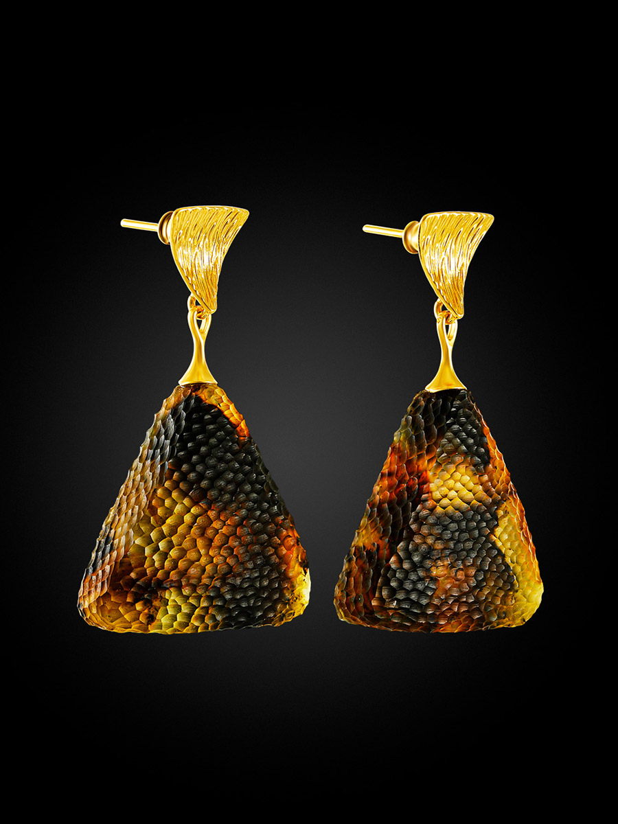 Текстурные серьги из янтаря с застёжками-гвоздиками «Марс»
