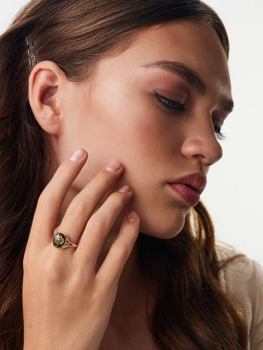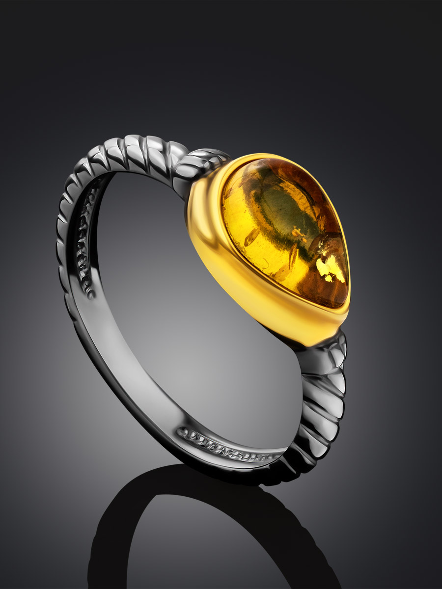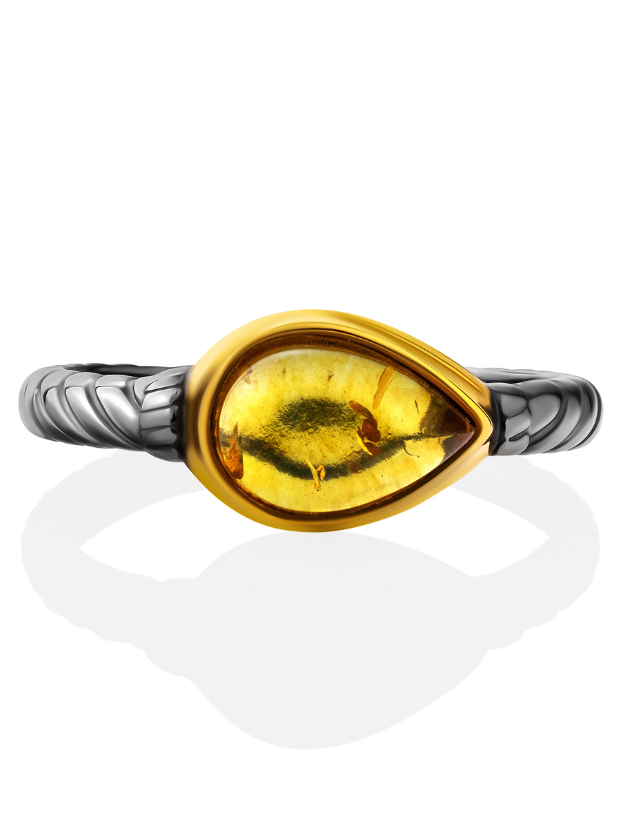 Тонкое изящное кольцо «Пайт» с натуральным янтарём