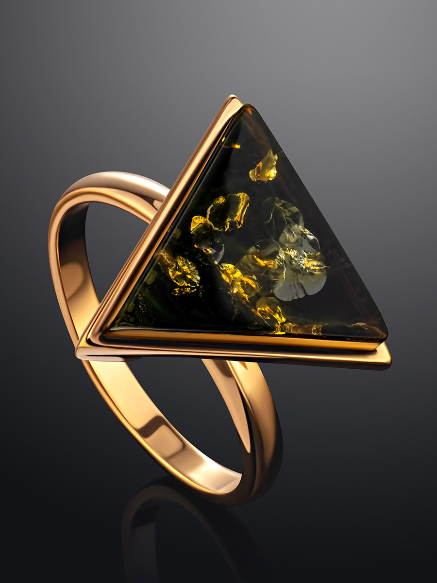 Треугольное кольцо с зелёным янтарём «Монблан»