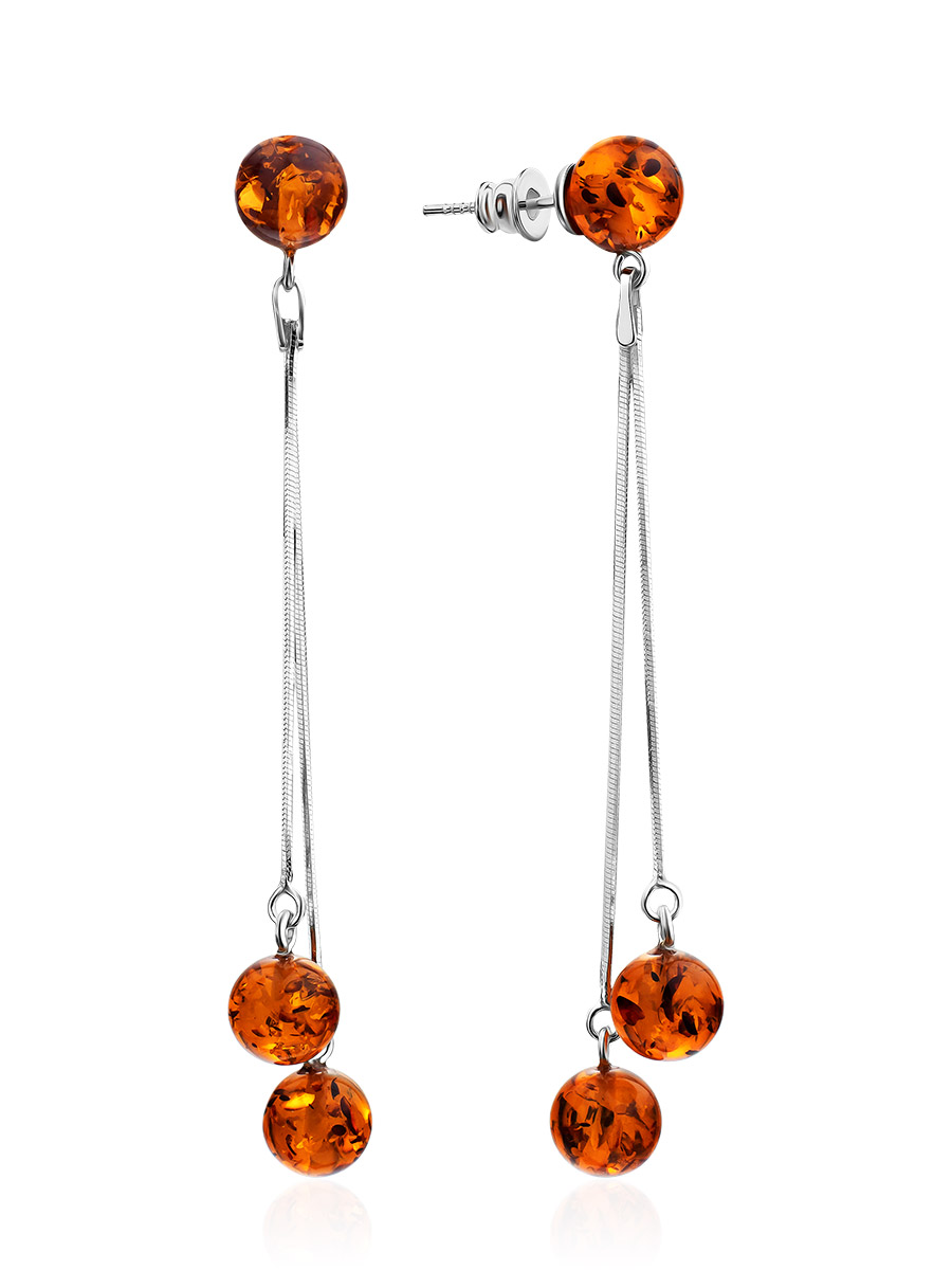 Удлинённые серьги-гвоздики из коньячного янтаря «Рябина»