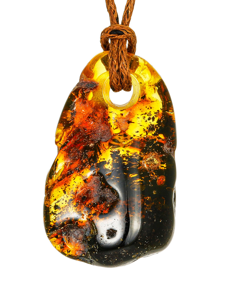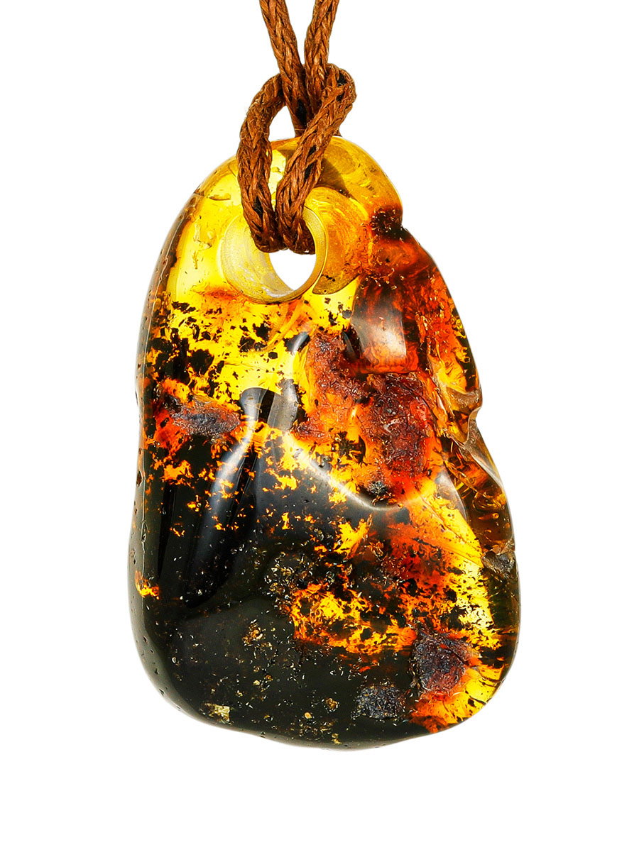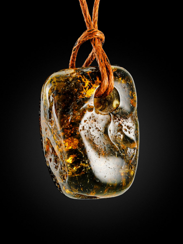 Янтарная подвеска с тёмными вкраплениями в форме капли