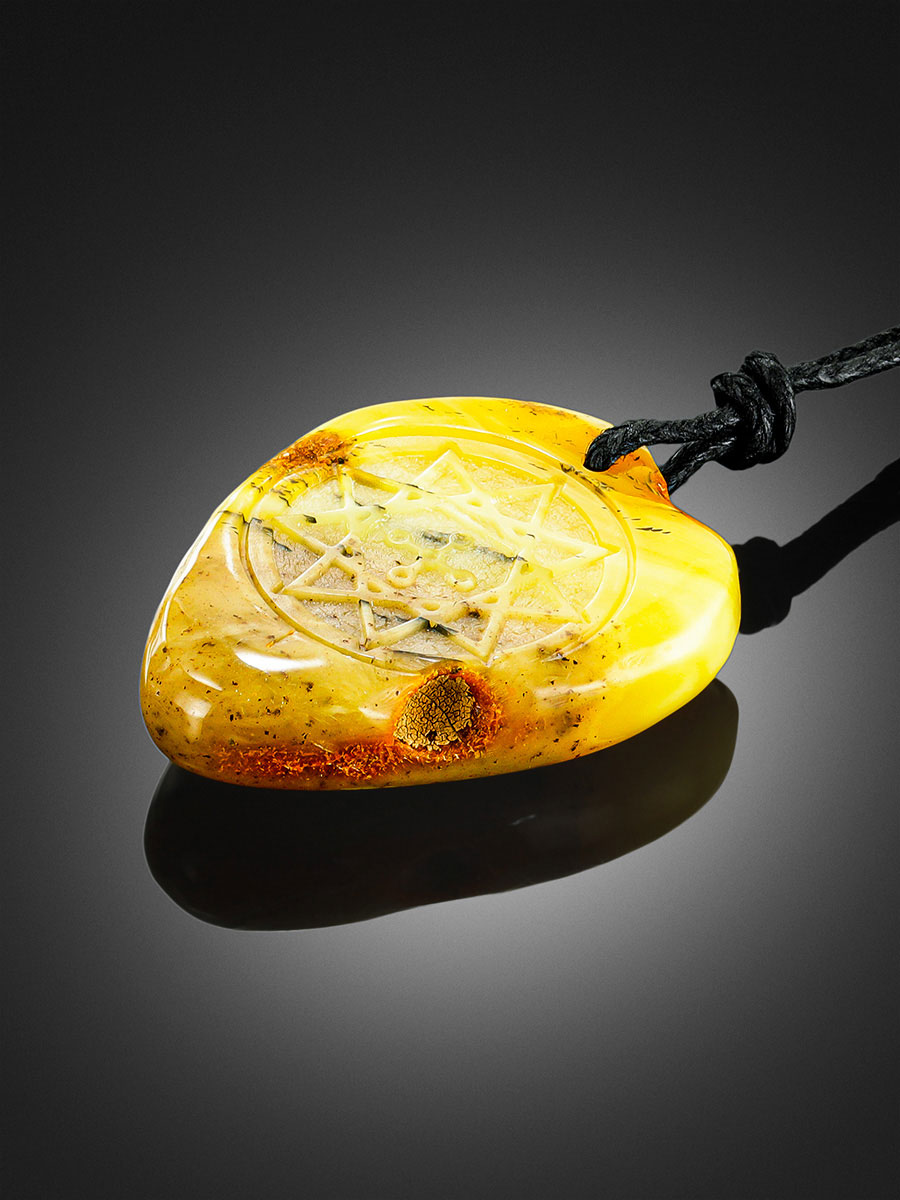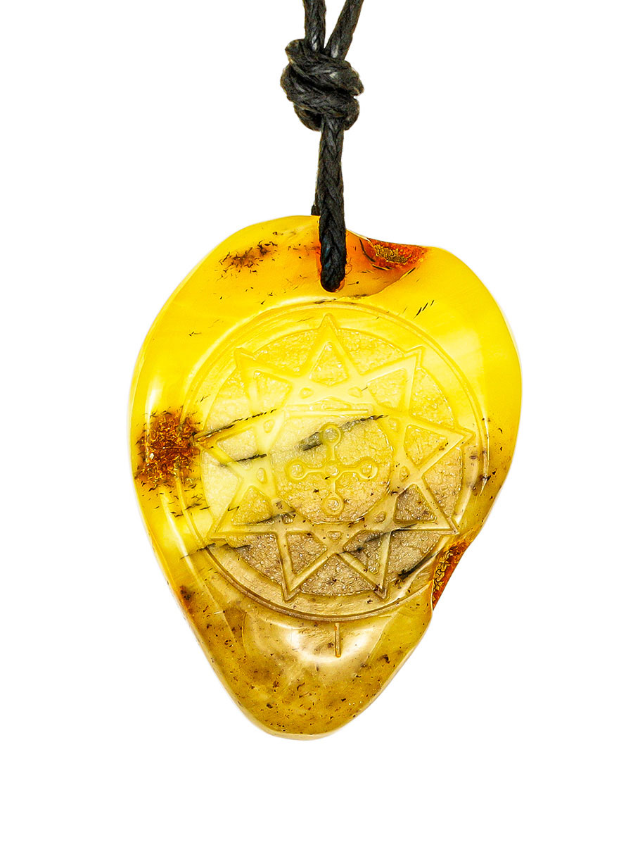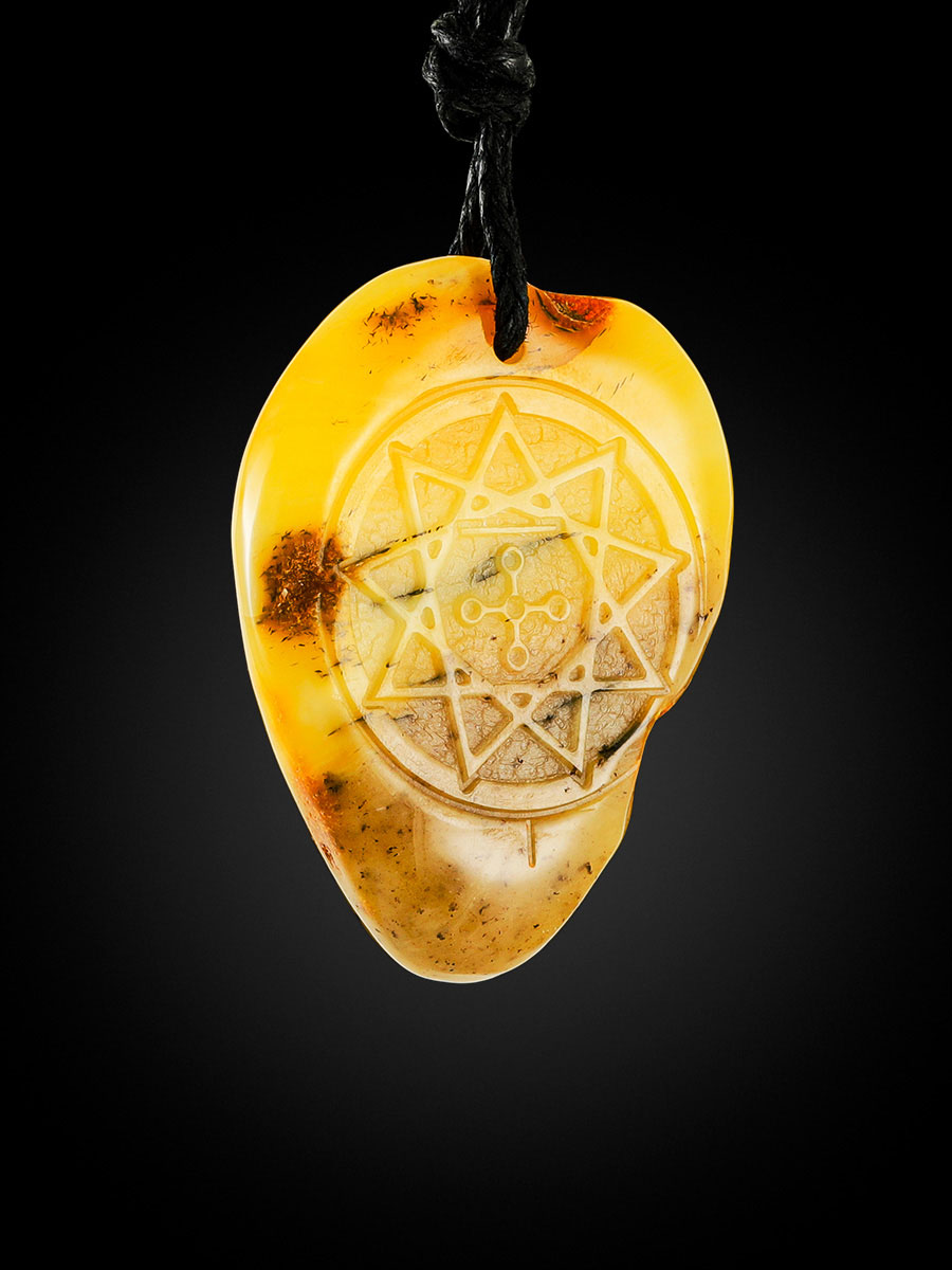 Янтарный кулон-оберег с резьбой «Чертог Змея»